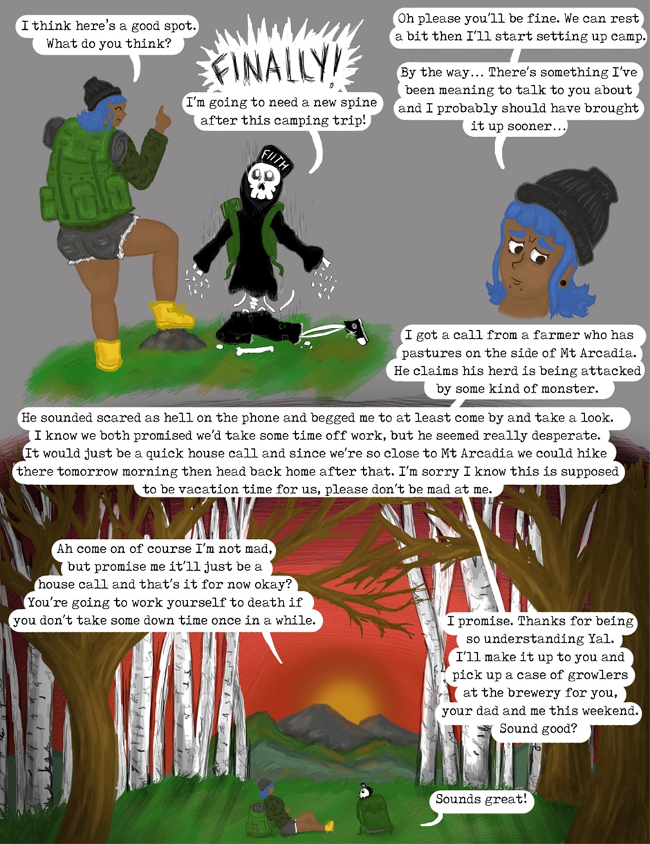 This is the story of Beatrice; a fun loving adventurer, and her best bud Yal; a depressed skeleton who dabbles in the arcane. Together the two take on the challenges, and antics, of everyday life in the deep woods of Appalachia. They may seem as different as day and night from each other, but nonetheless they are inseparable companions that battle their own metaphorical, and sometimes literal, demons, together.