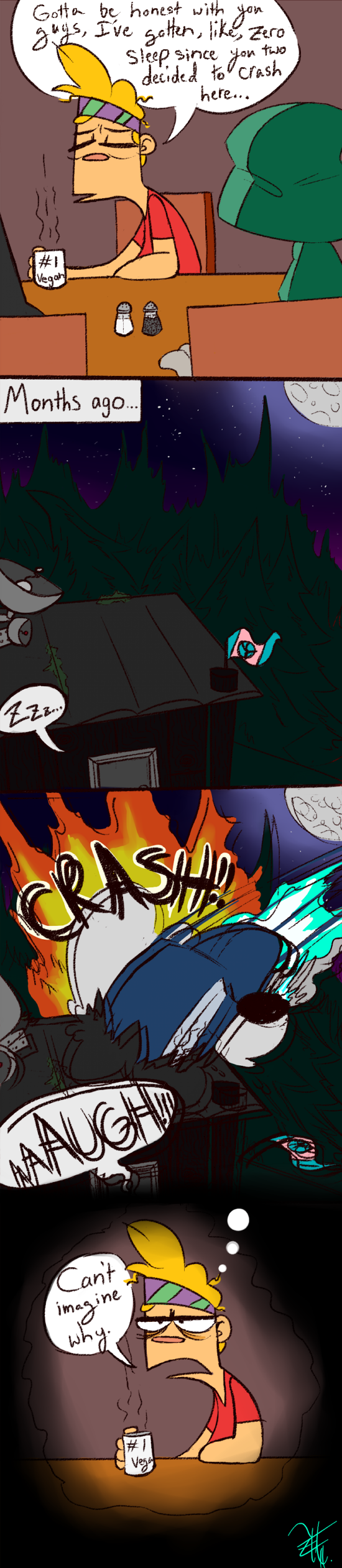 The classic tale of a human, an alien, and a grim living together in the hills of Kerfuffle, Canada. Of course, this arrangement brings about its own hitches as town embarrassment Barry (our human) attempts to keep his new paranormal pals hidden from the authorities, ward off any unearthly dangers their existence near him causes, and help them repair their spaceship-car thingy so they can be on their merry way. Why doesn’t he report them? The answer is as simple as he is: they’re nice to him.