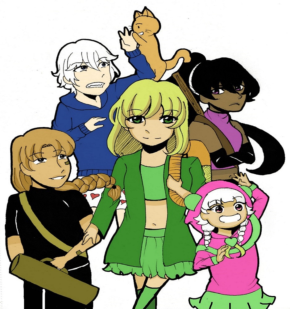 Here is Olivia and the rest of the crew from the bottom left is Luke, Jack Chester, Olivia, Rain and Lucy.