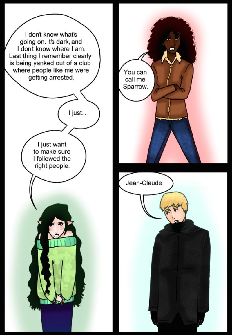 Arcane is a fantasy comic about an oppressive government that has banned sorcery. Not all agree with this rule and a revolution is stirring among the magical. Started early in 2014, thus the art looks "different" in the beginning. Written by Ben Hamlin and Art by me (SuddenBeth).