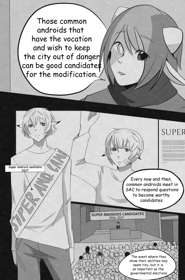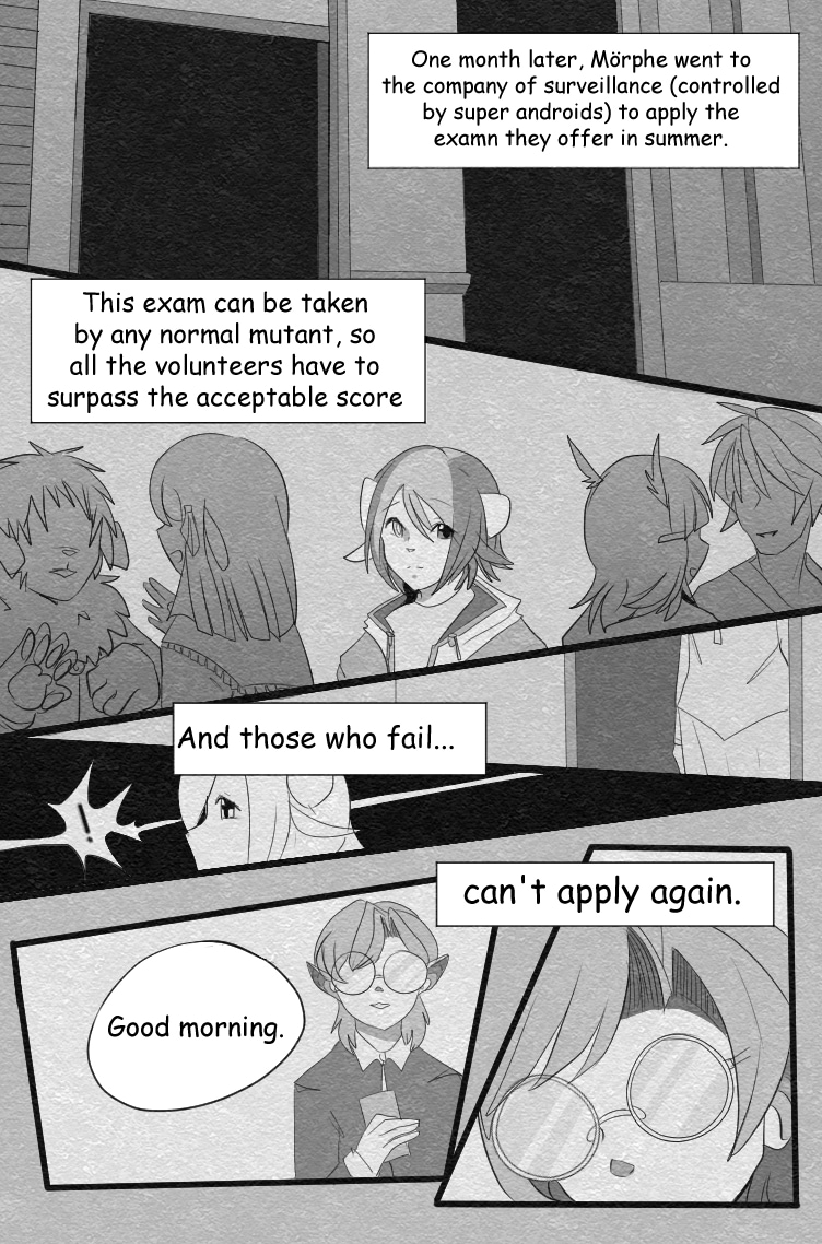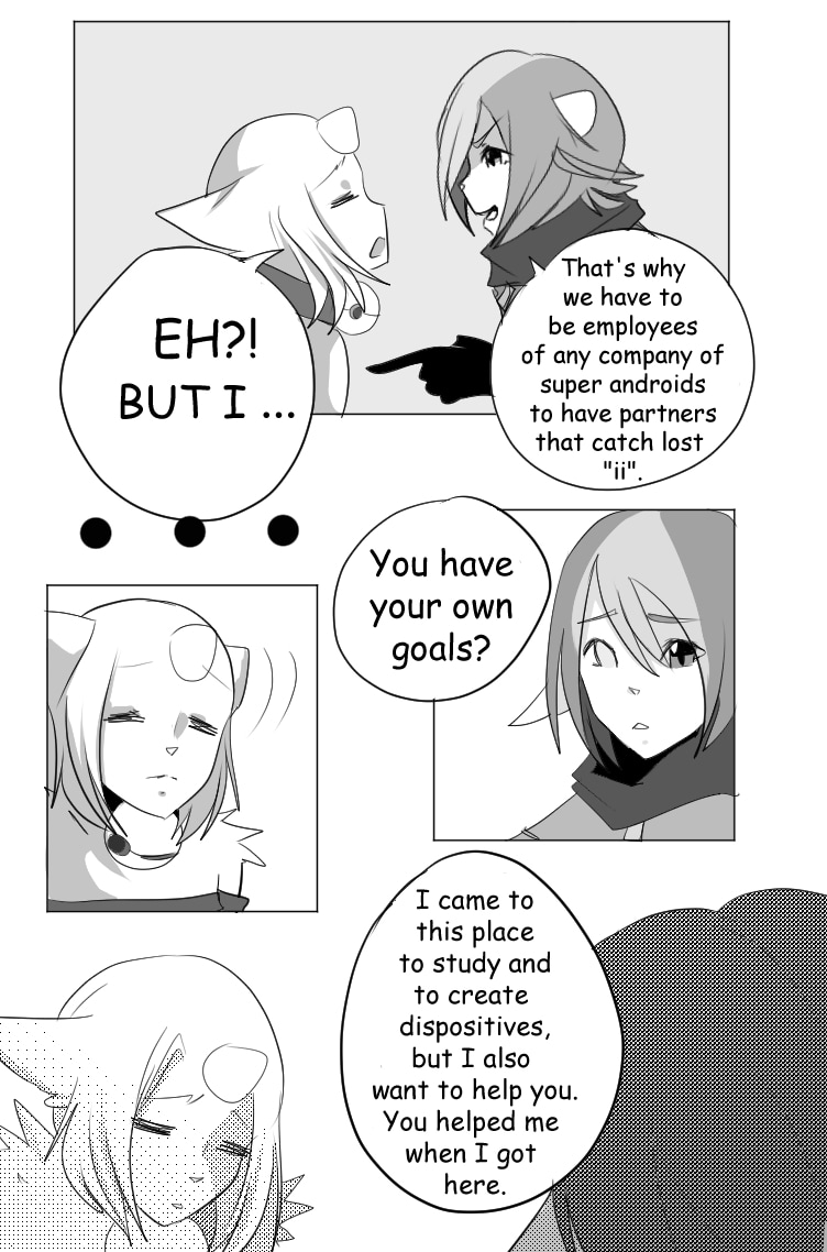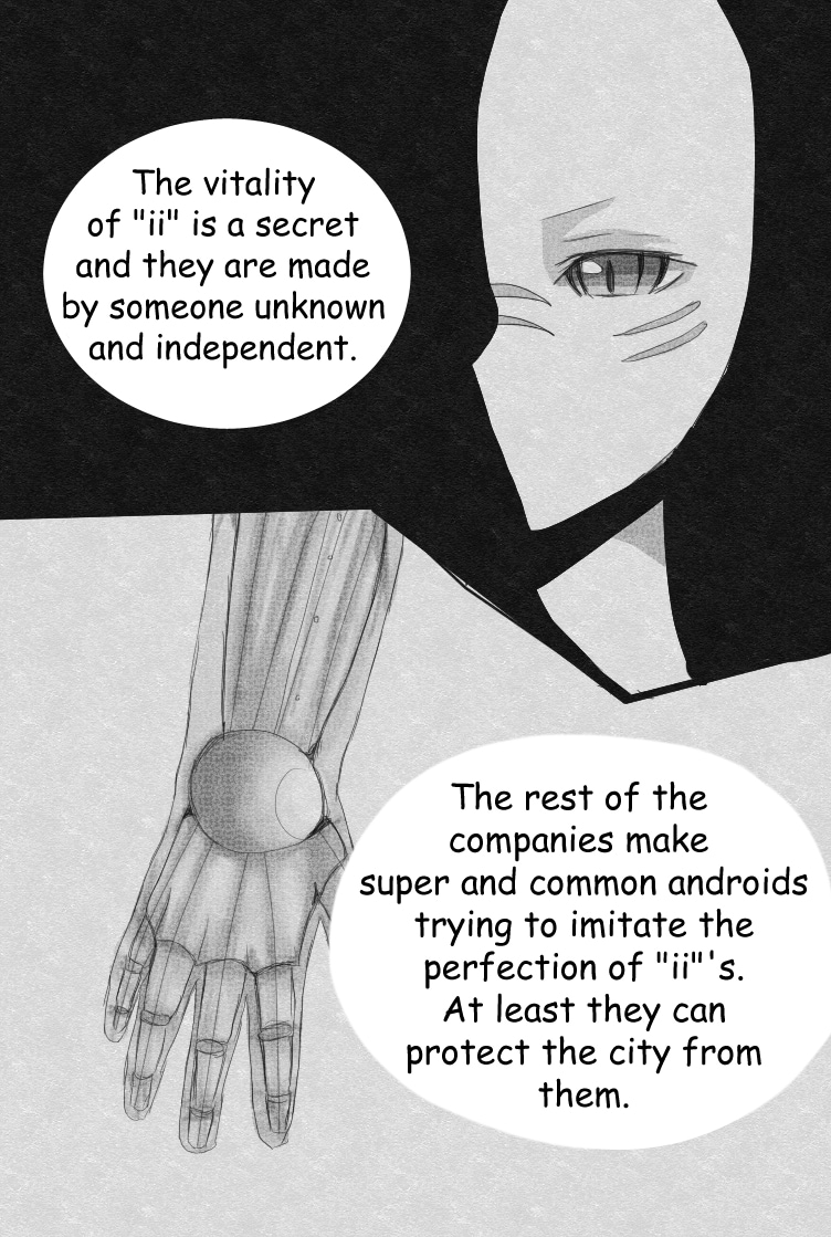 In this world, mutants became the new dominant race. Technology (and the necessity to be superior than others) was the main priority, even when most of the mutants were only living beings without any special feature. One of them is Mörphe (Muphy), an enthusiast and fanatic of androids in general, regardless of their bizarreness. She will find the way to connect with them to learn more about their functions, even if she put her life at risk.