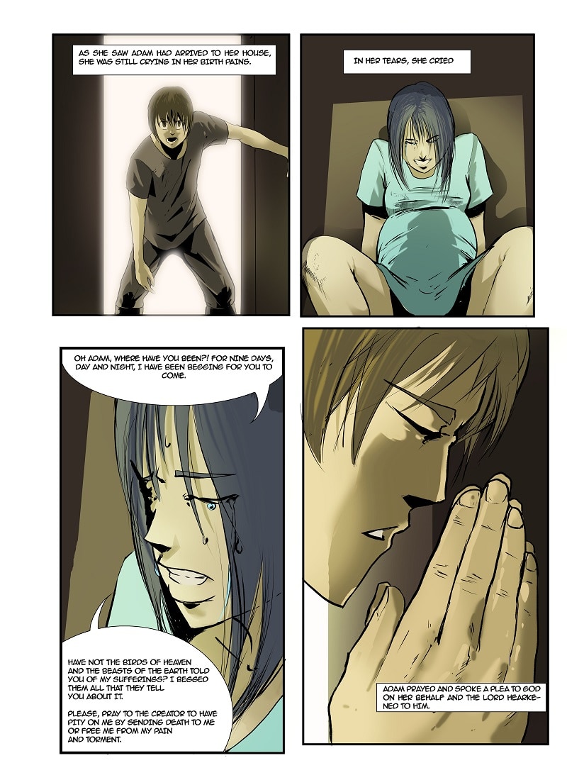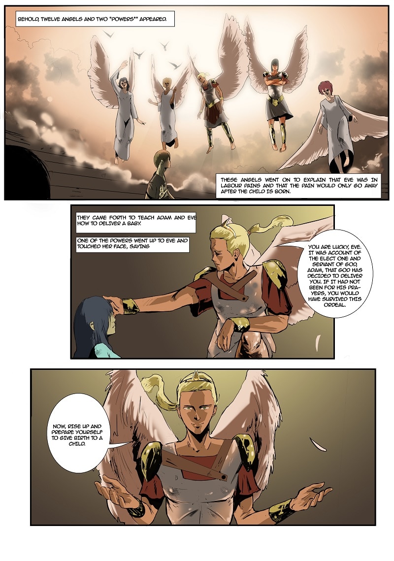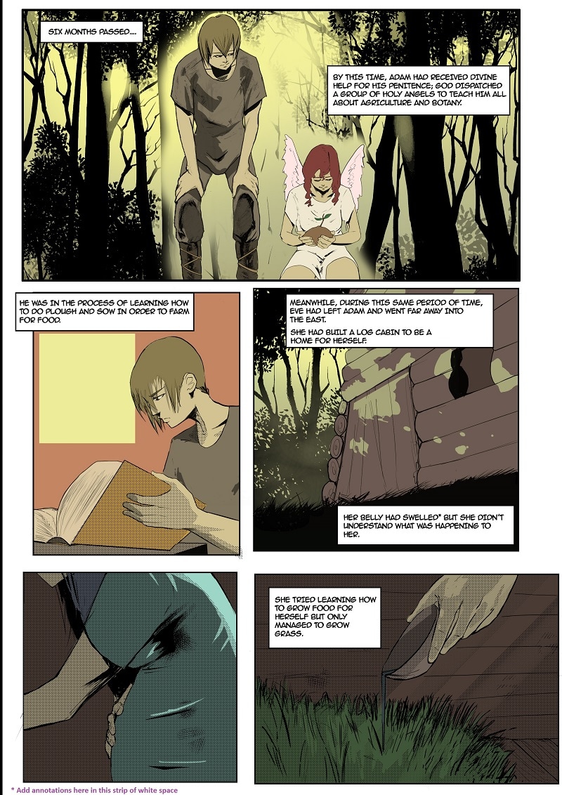 The events that transpired right after being out of Eden. This is pages 16 to 20 , out of the 20 pages for Chapter 5.