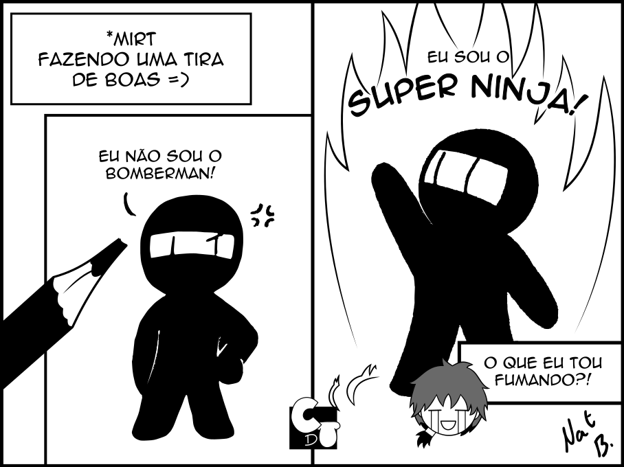 Ás vezes a gente faz umas tiras e sai umas piadas bem nhé, hehe. Aqui um dos personagens criados pelo Mirt, o "Super Ninja"! É o que tem pra hoje, até a próxima tira o/ EXTRA: Postagem especial sobre o Ninja! https://goo.gl/GvxYJU