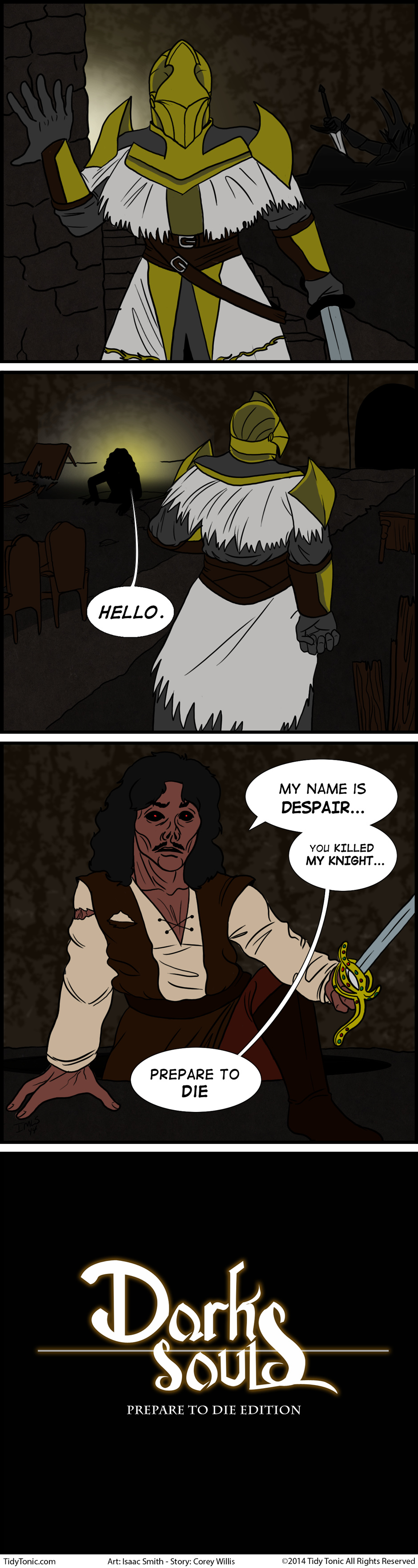The PC port of Dark Souls had a subtitle that grabbed my attention when I first saw it. "Prepare to Die Edition" was primed for a Princess Bride joke. Art by Isaac Smith.