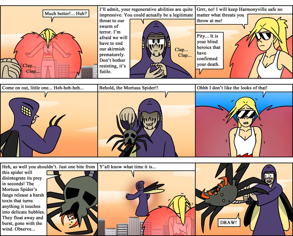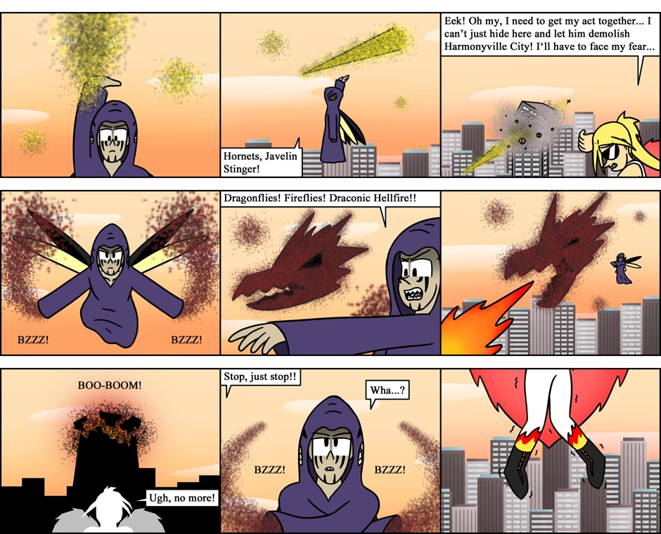 Heretick and his insect swarm of terror have Harmonyville City in trouble once again. It is up to Crystal to step into the fray and face her crippling fear of bugs while the guys are busy nerding out on video games. Can she withstand the powerful and vile attacks of Heretick's swarm, or will she suffer defeat under the handicap of her fears?
