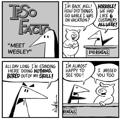 Ipso Facto updates Monday, Wednesday and Friday. Welcome to Eddie's Video Paradise, one of the last remaining video stores in the country. Join Eddie, his employees, and a whole host of characters for all the joys and thrills of working in a retail establishment.