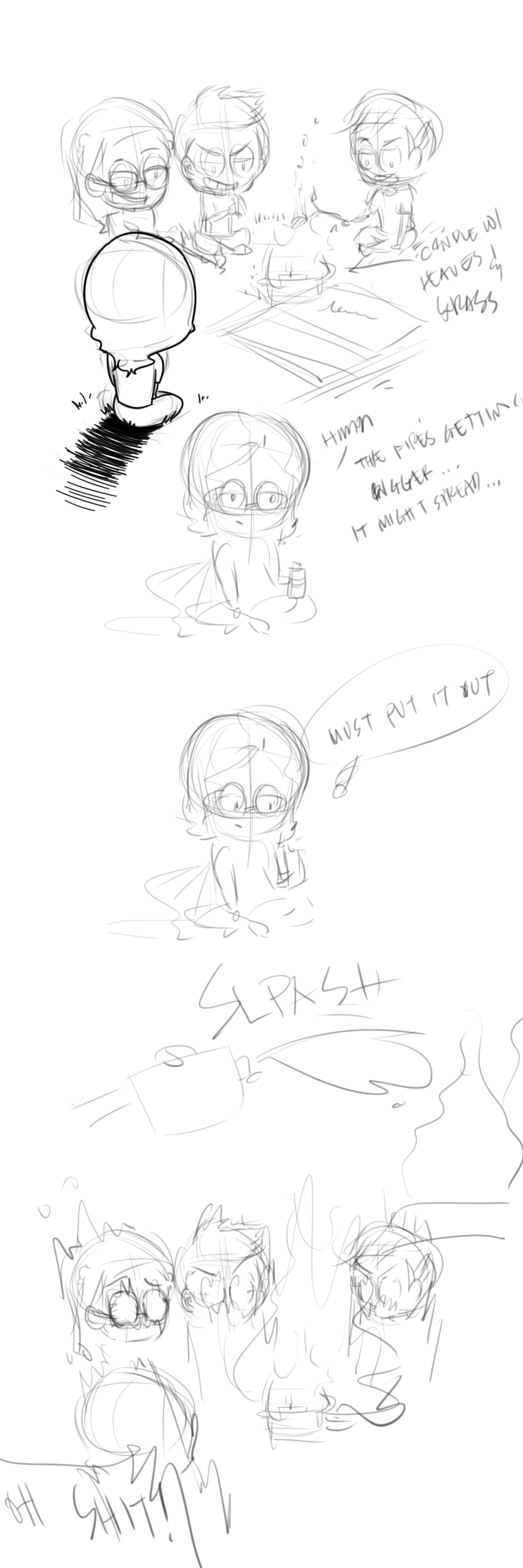 October 2016 - Unfinished sketch It was late October and... actually November 2 is the 'All Soul's Day', same as 'obon' in Japan. We visit the graves of our relatives and 'hang-out' with them the whole night(sometimes). We made (camp)FIRE!!! And me and my other 3 siblings were sitting around it (I'm the eldest). The fire was getting a little bit... uncomfortably big. I SPLASHED WATER!!! AND IT EXPLODED! Ok, mom was mad about that and my siblings were frickin so scared. HAHAHAHA!