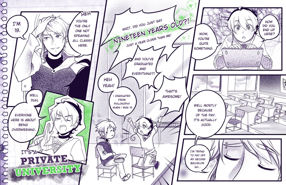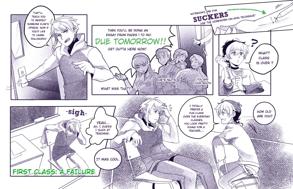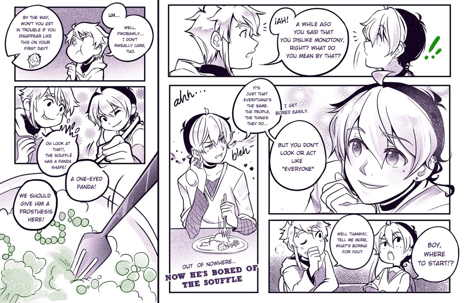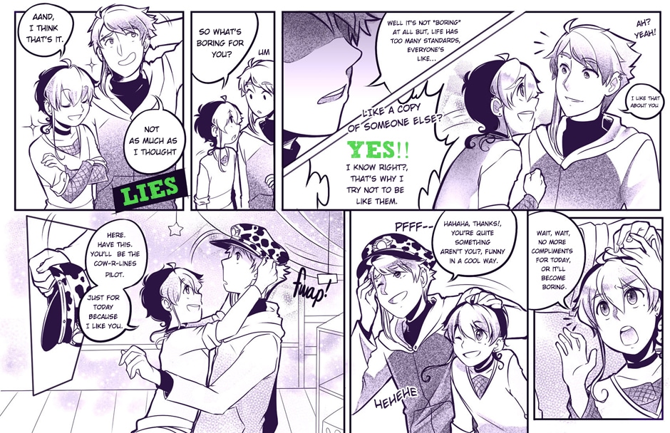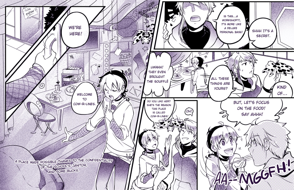 The second bundle, now chapter one's complete! <3 These pages were done back in 2012, so they're full of mistakes and nonsense, but still, we hope you enjoy them. We'll be uploading new pages every Sunday night, stay tuned!