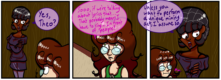 Ahhh, finally. I want to get these pages out more frequently, I really do. I'm slowly trying to figure out the right way to do speech bubbles, hopefully they're starting to look better.