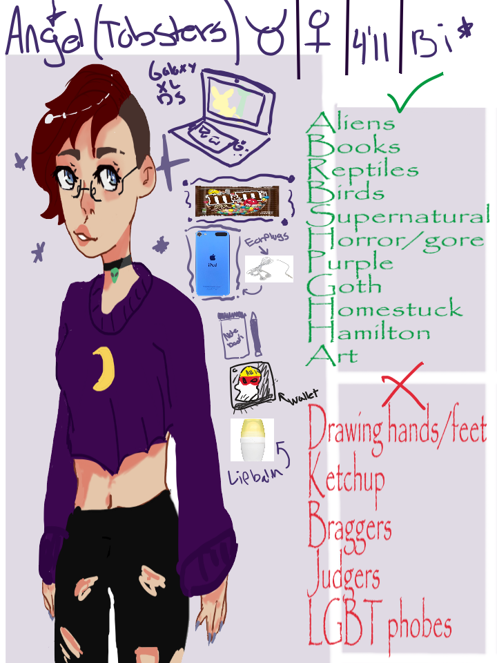 Meet...me! WHOO I forgot some detail so I'll say it here I like ANY rock music. Metal, Alternative, 80/90's rock. I'm very emotional. (I smile ALOT but tend to lash out or get upset for no reason)
