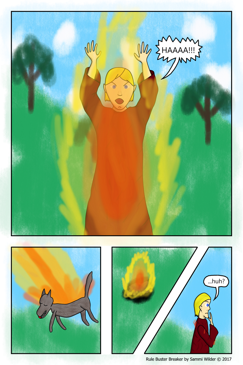 The worst part about writing this part was the inevitable end of the wolf. At least it was quick, the fire had to be extremely hot to burn the wolf to such a degree.