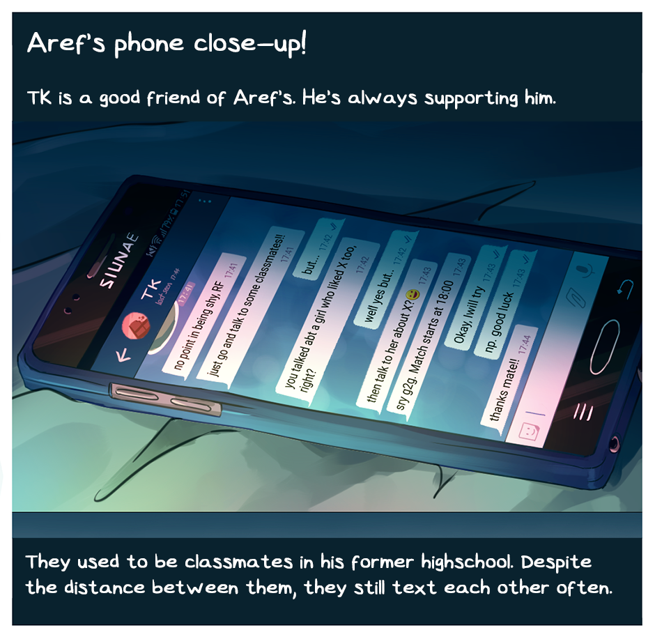 Summer is near and Aref, a shy boy new to the city, still has no friends. Having a crush on an oblivious girl that barely notices him doesn't seem to make things better. Everyone in class is a stranger... and some students seem to give a rather hostile impression. Although that's nothing compared to the rumors concerning the dangerous individuals that rule the neighborhood... Updates every 2 weeks (Fri).