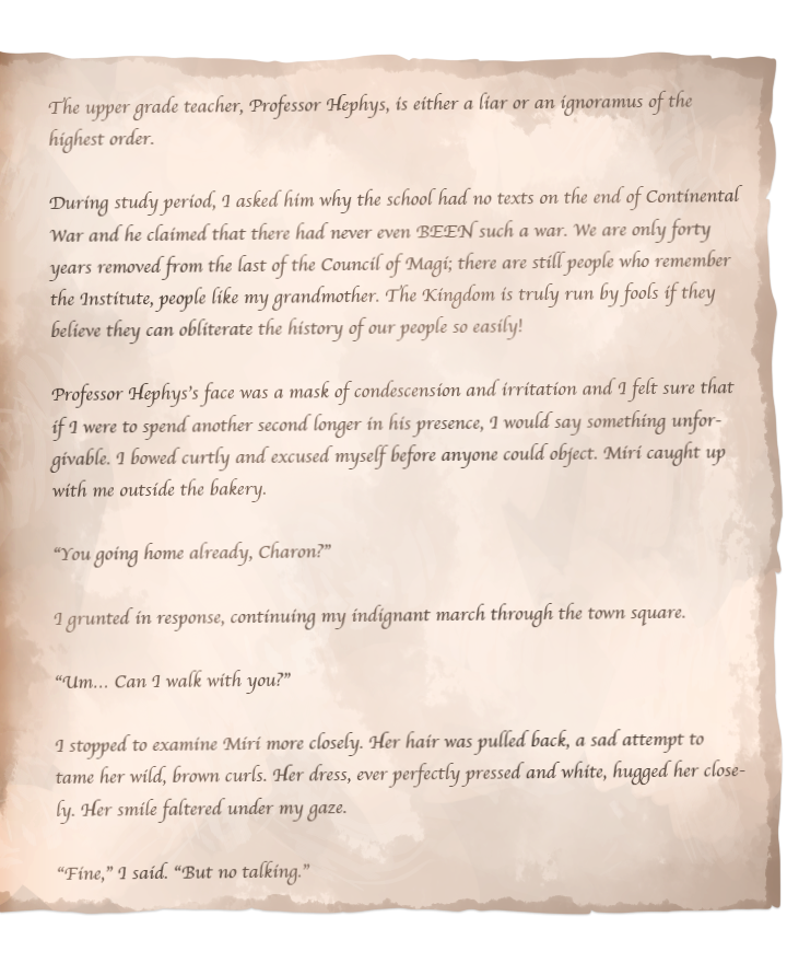 This is the story of Charon, a boy who's life changed completely when he learned to channel magic. Follow his life as he grows up in a world after the events of the first three chapters of Aikonia, where the use of magic is banned and the kingdom grows more and more corrupt.