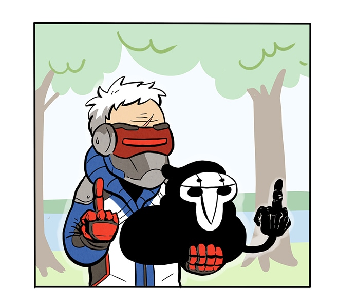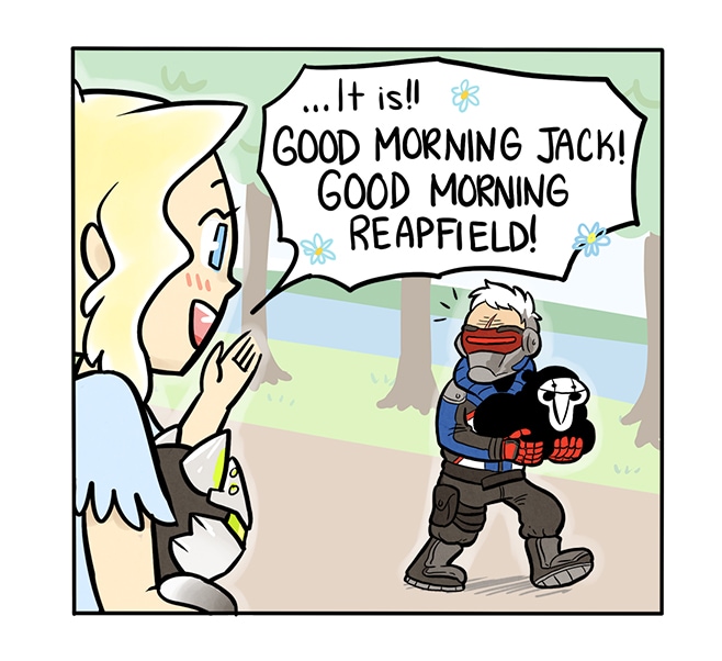 :) Final thoughts: I was REALLY counting on a Reapfield cameo. I've such a fan of Reapfield that I've felt even in the beginning of GenjiCat that I could never draw my own versions of 76 & Reaper, because it would just be like competing with Reapfield. And you can't compete with Reapfield. He's perfection.