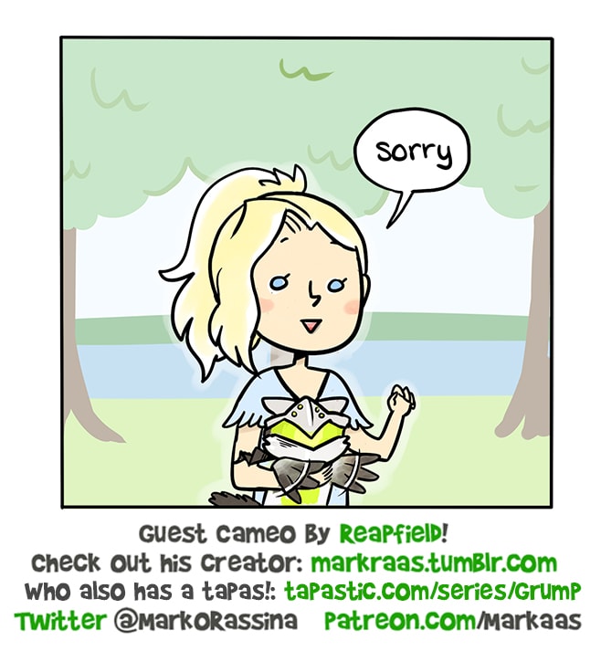 YES THAT'S ACTUALLY REAPFIELD DRAWN BY REAPFIELD'S ARTIST. I was SO stoked to have snagged a cameo, major shoutout to the talented Marko, who does lots of Overwatch comics and even a gaming comic here on Tapas! Check him out! https://tapas.io/series/Grump