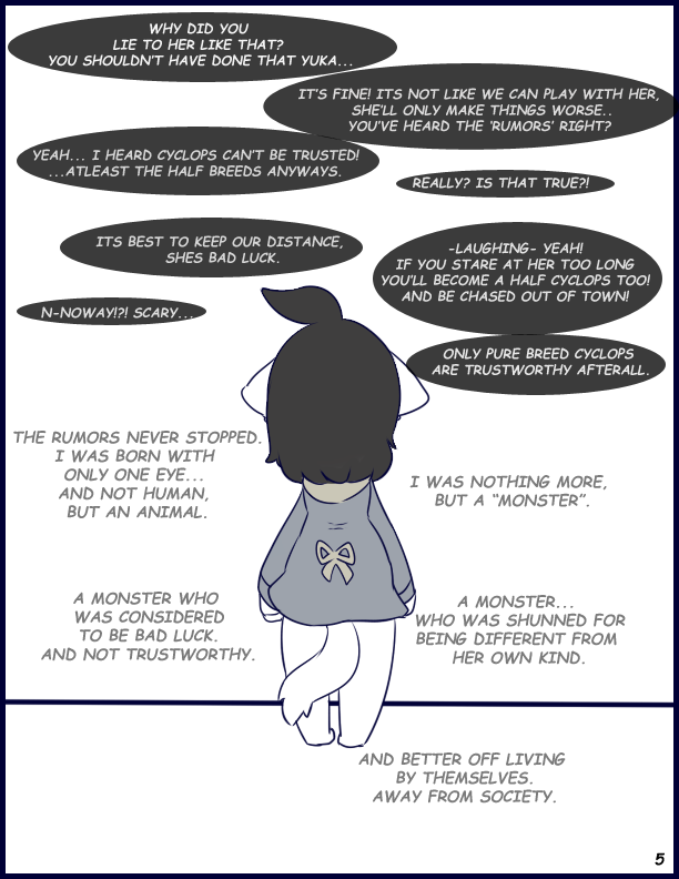 black n white lil comic/(manga?) about Bea, and her story about living a life as a hybrid cat/cyclops and being shunned and dealing with being called a "monster".