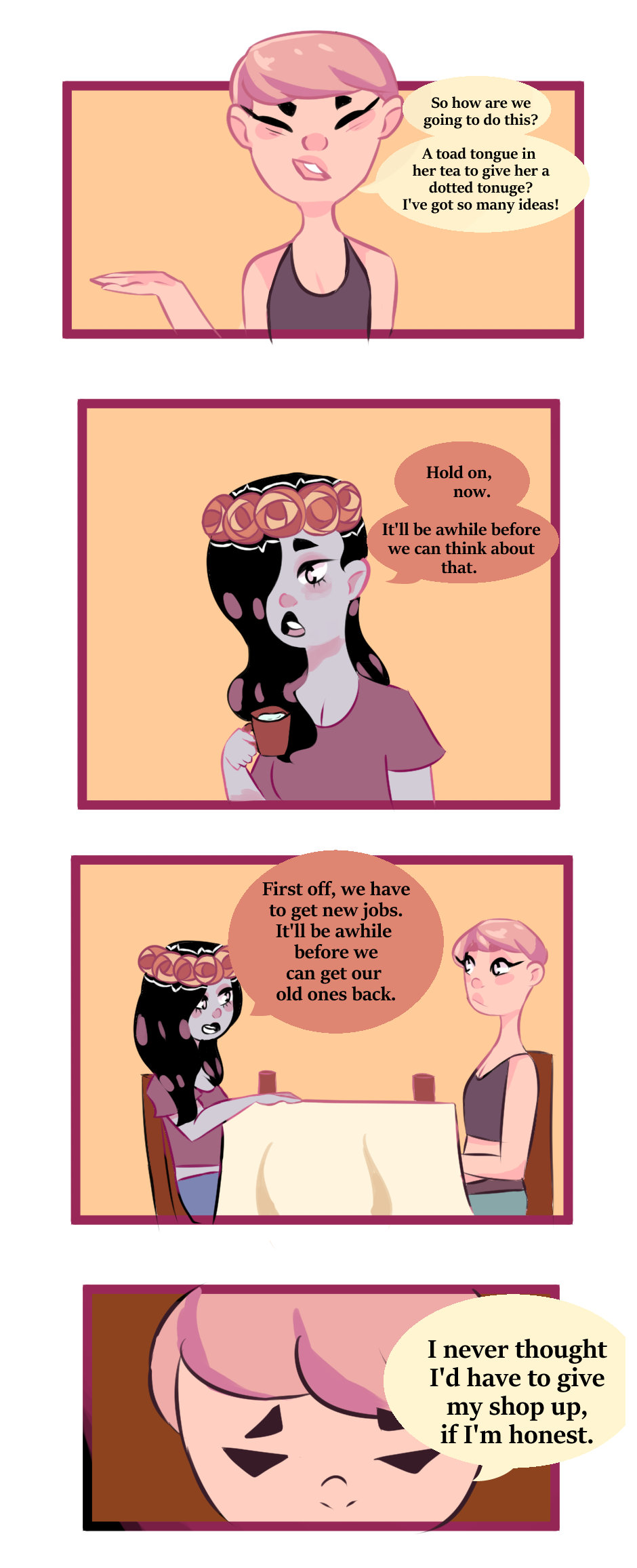 Sorry for taking so long to get back at this! Don't worry, I've got a lot planned! Who's your favorite character so far? Let me know in the comments!