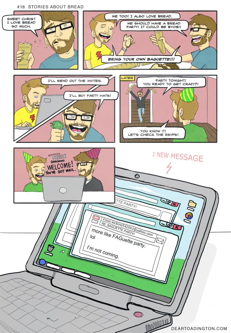 “Interesting fact: this is the first comic we ever came up with for Dear Toadington, almost a year ago. It’s one of my favorites. I’m sure you won’t be very surprised that we were pretty drunk at the time.”