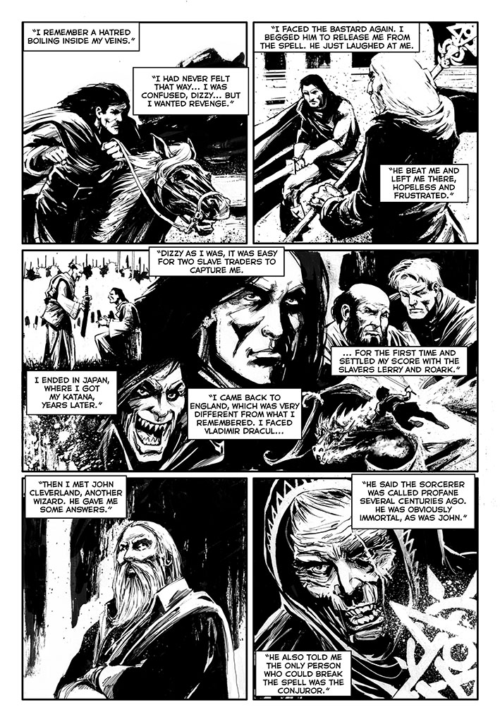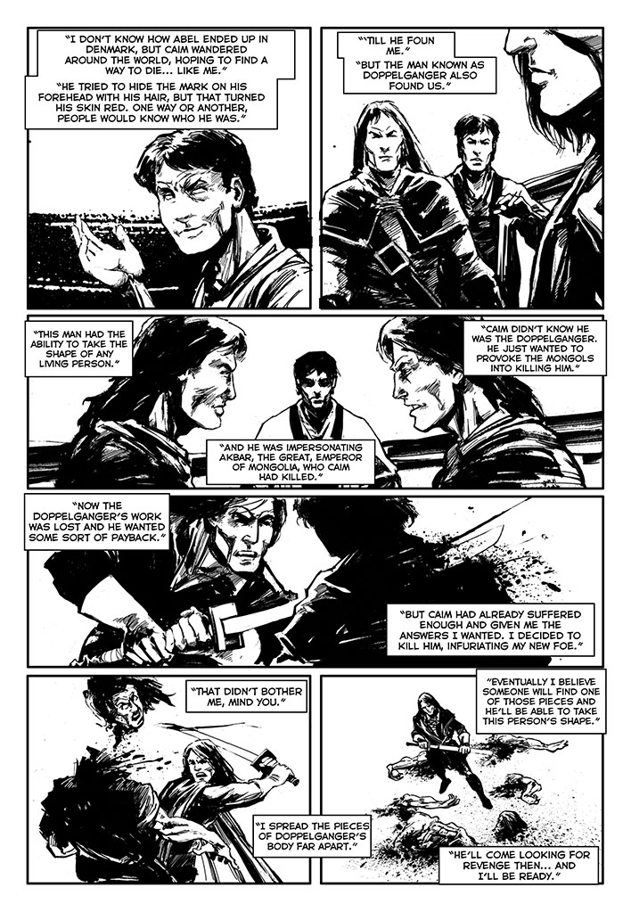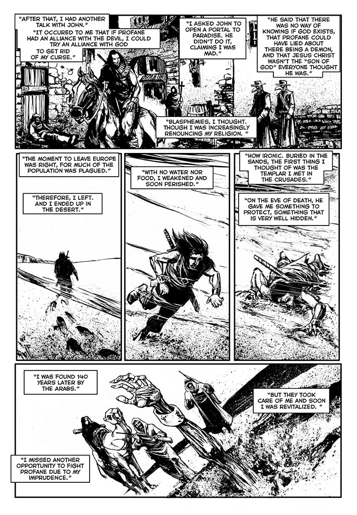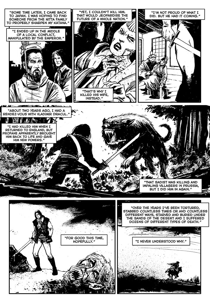 Once free, this immortal warrior went through various adventures. He went to Japan, confronted Dracula before he became a vampire, participated in the Crusades, saw the black plague closely and many other things. There are three volumes already published: