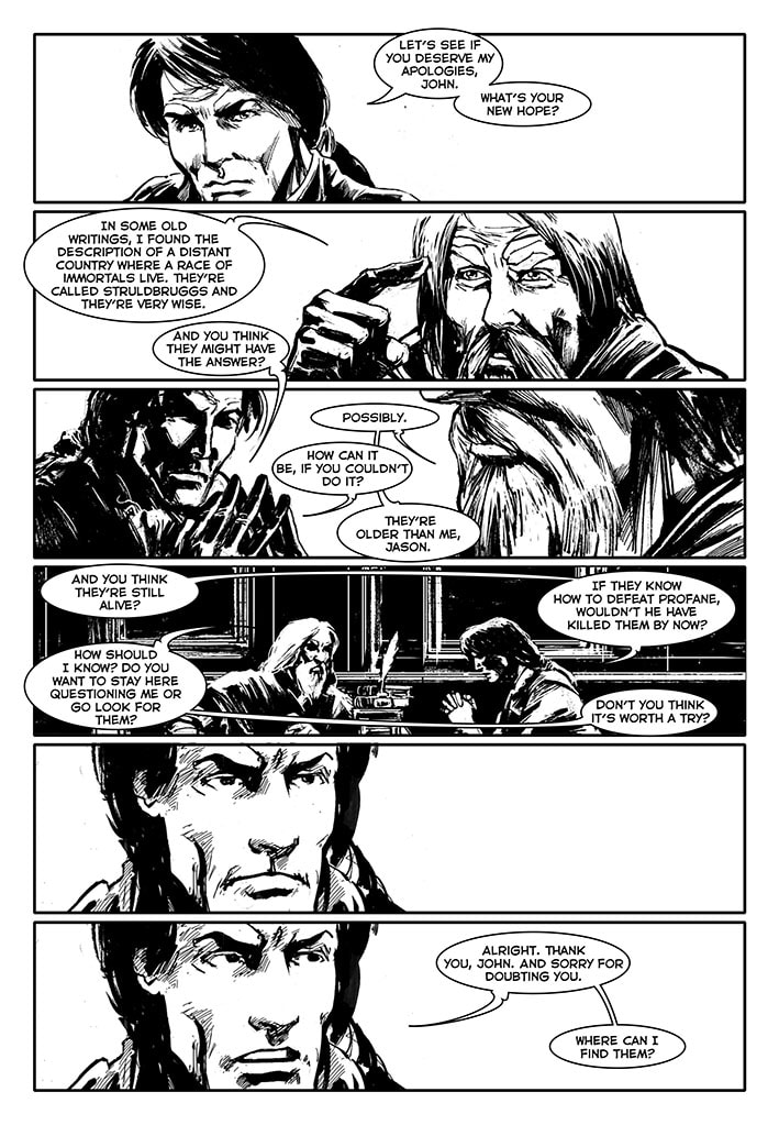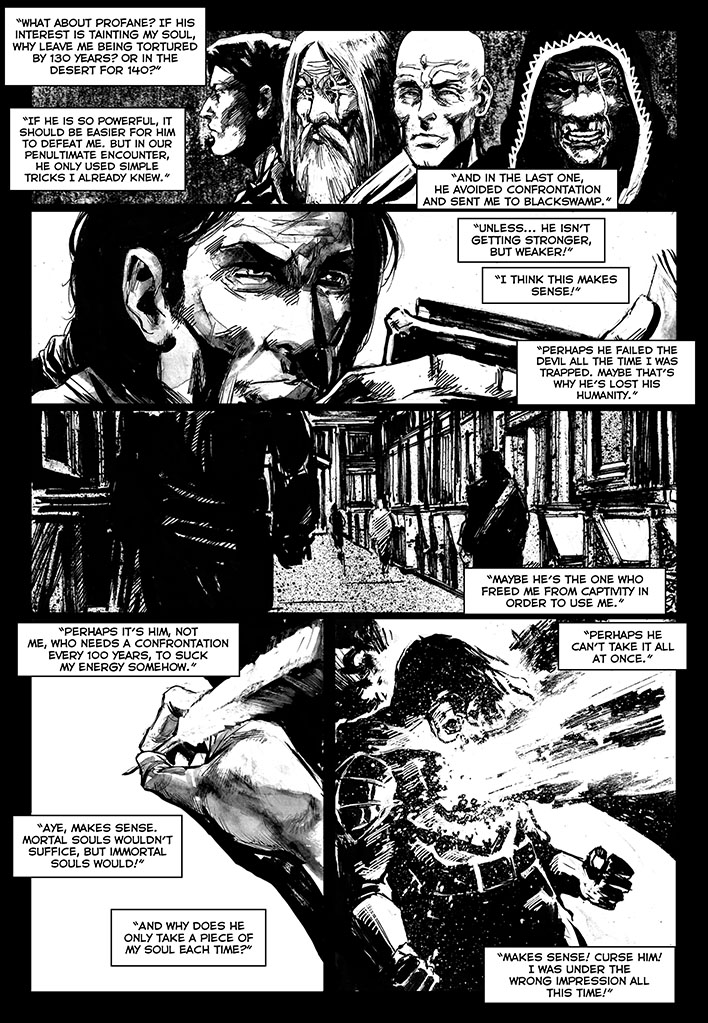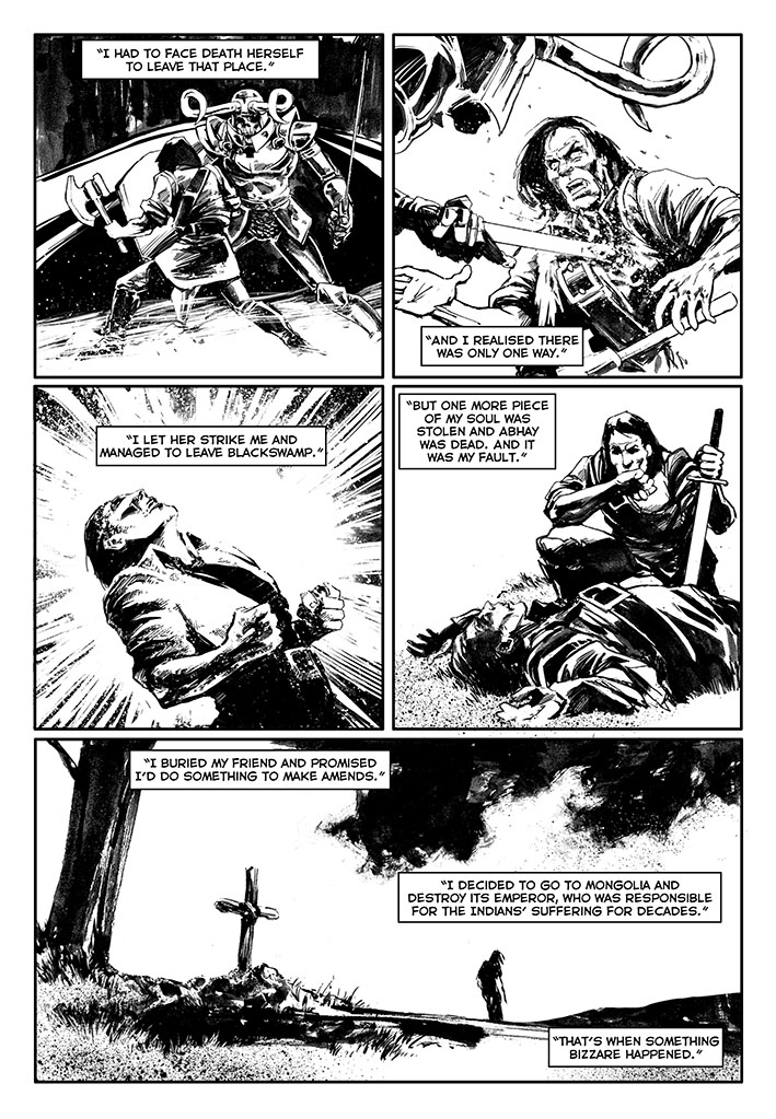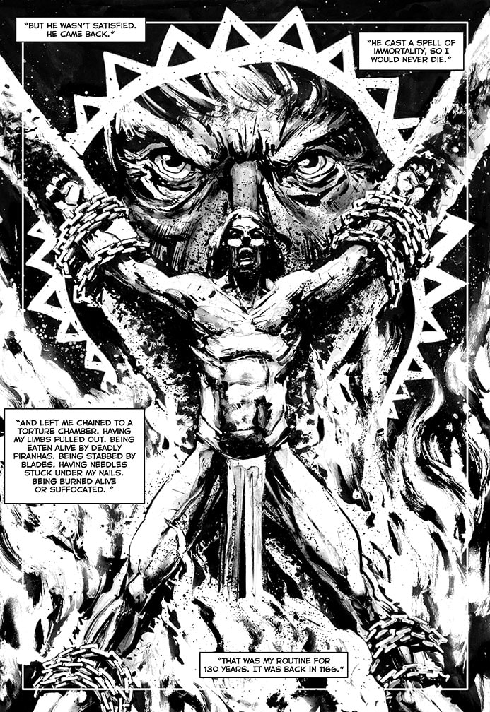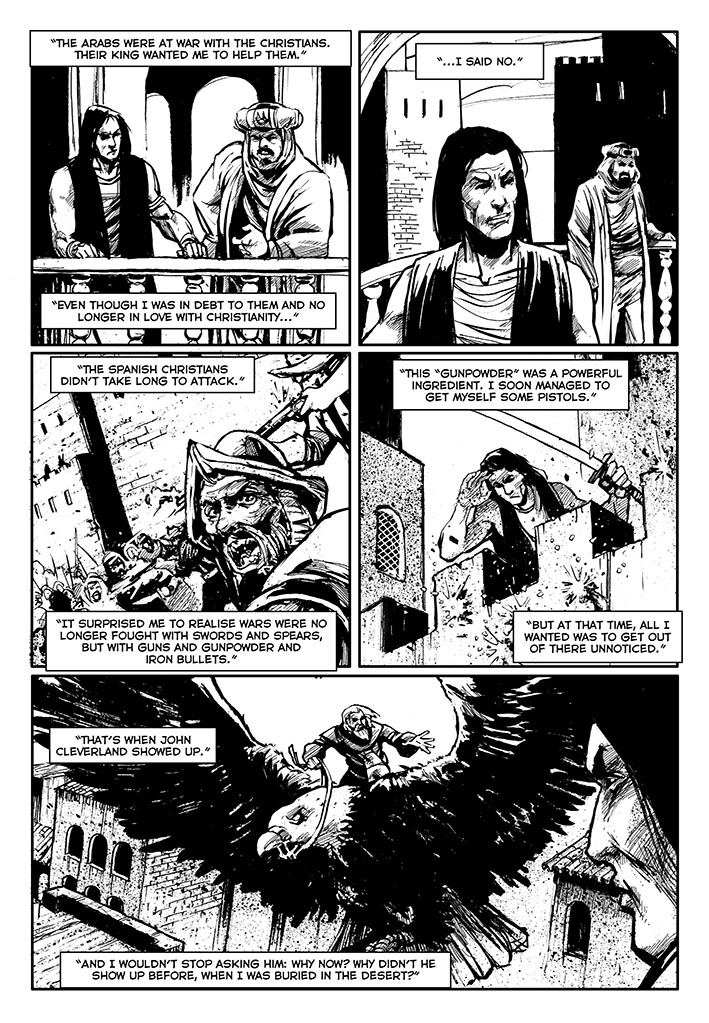 Once free, this immortal warrior went through various adventures. He went to Japan, confronted Dracula before he became a vampire, participated in the Crusades, saw the black plague closely and many other things. There are three volumes already published: