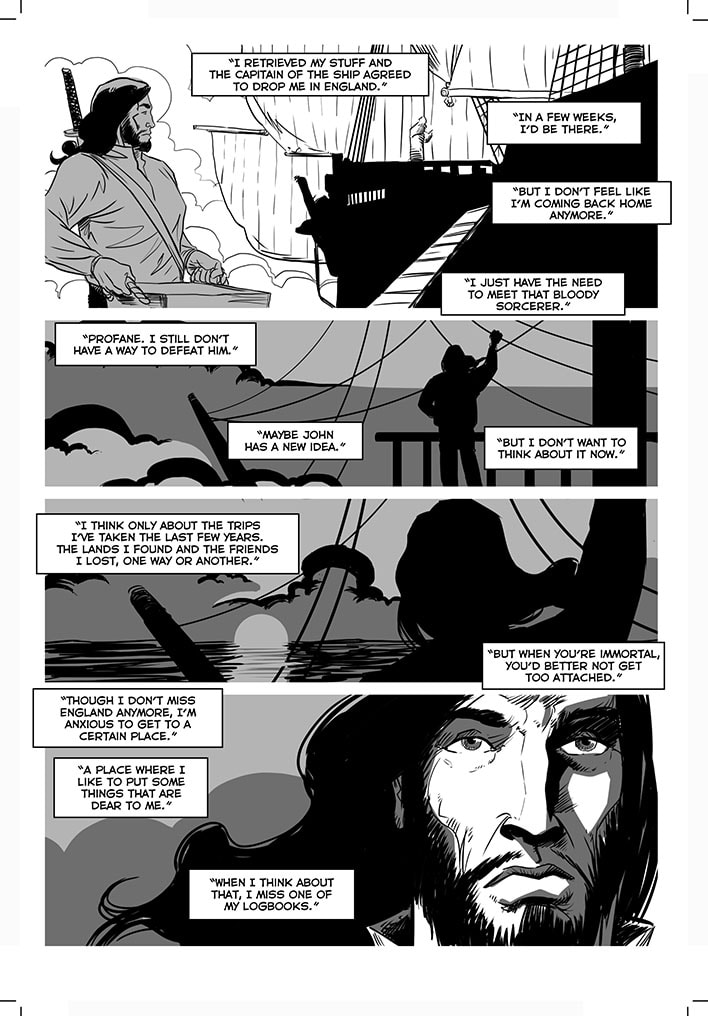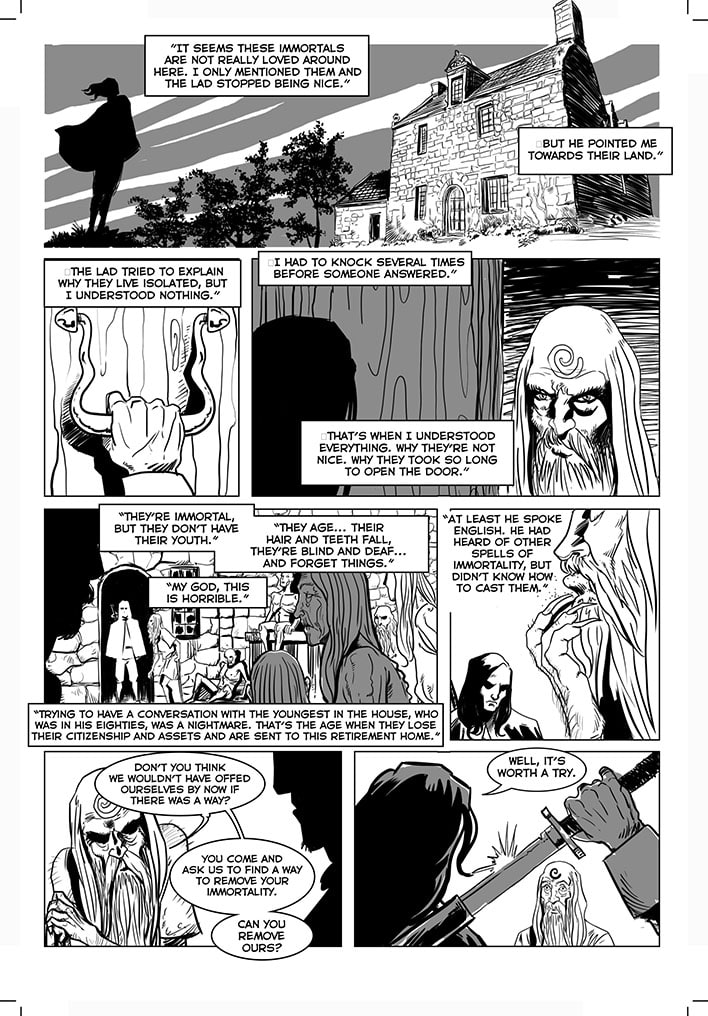 Once free, this immortal warrior went through various adventures. He went to Japan, confronted Dracula before he became a vampire, participated in the Crusades, saw the black plague closely and many other things. There are three volumes already published: