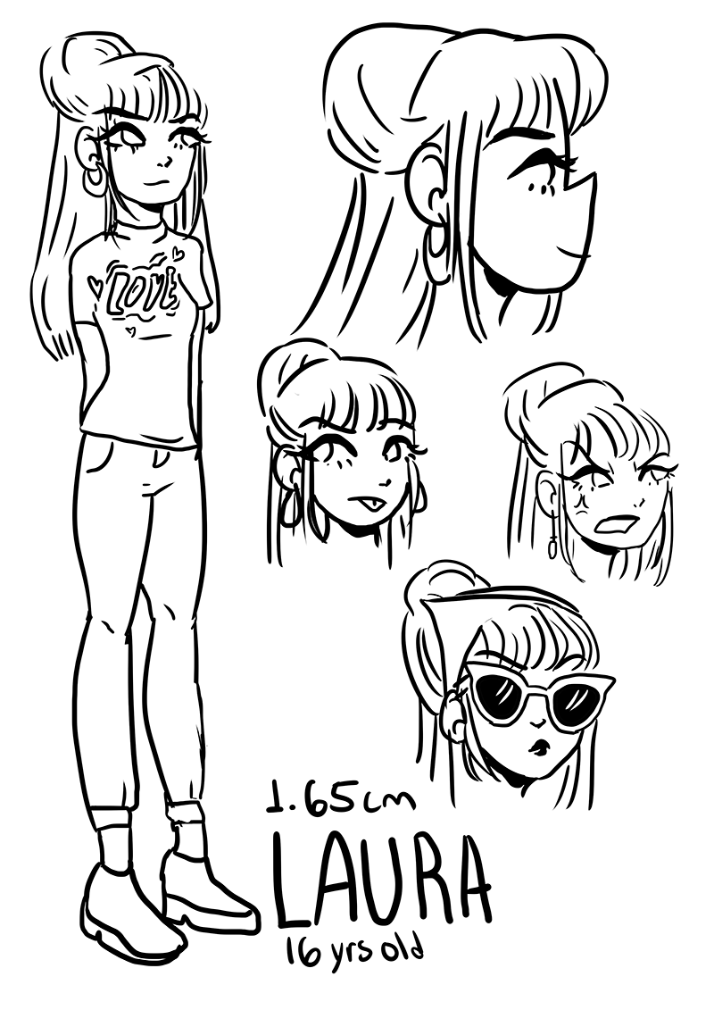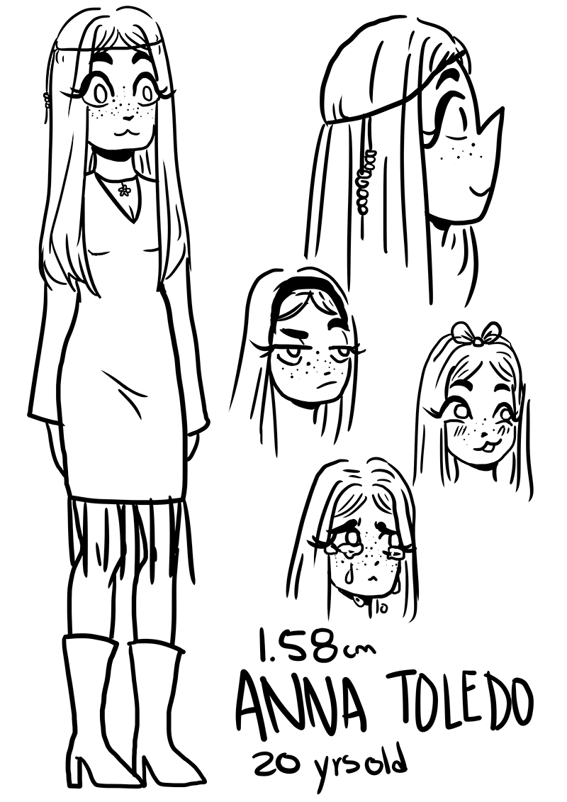 Sorry I didn't upload anything :c, but I rescued a little kitten a week ago or so and I've been taking care of her since she was so hurt she could barely walk, now she's good, healthy and walking, that's why I'm back to drawing, but I don't have any pages done yet, so in the meantime have some concept art of the characters in this comic, it's arranged from most to least important in the story.