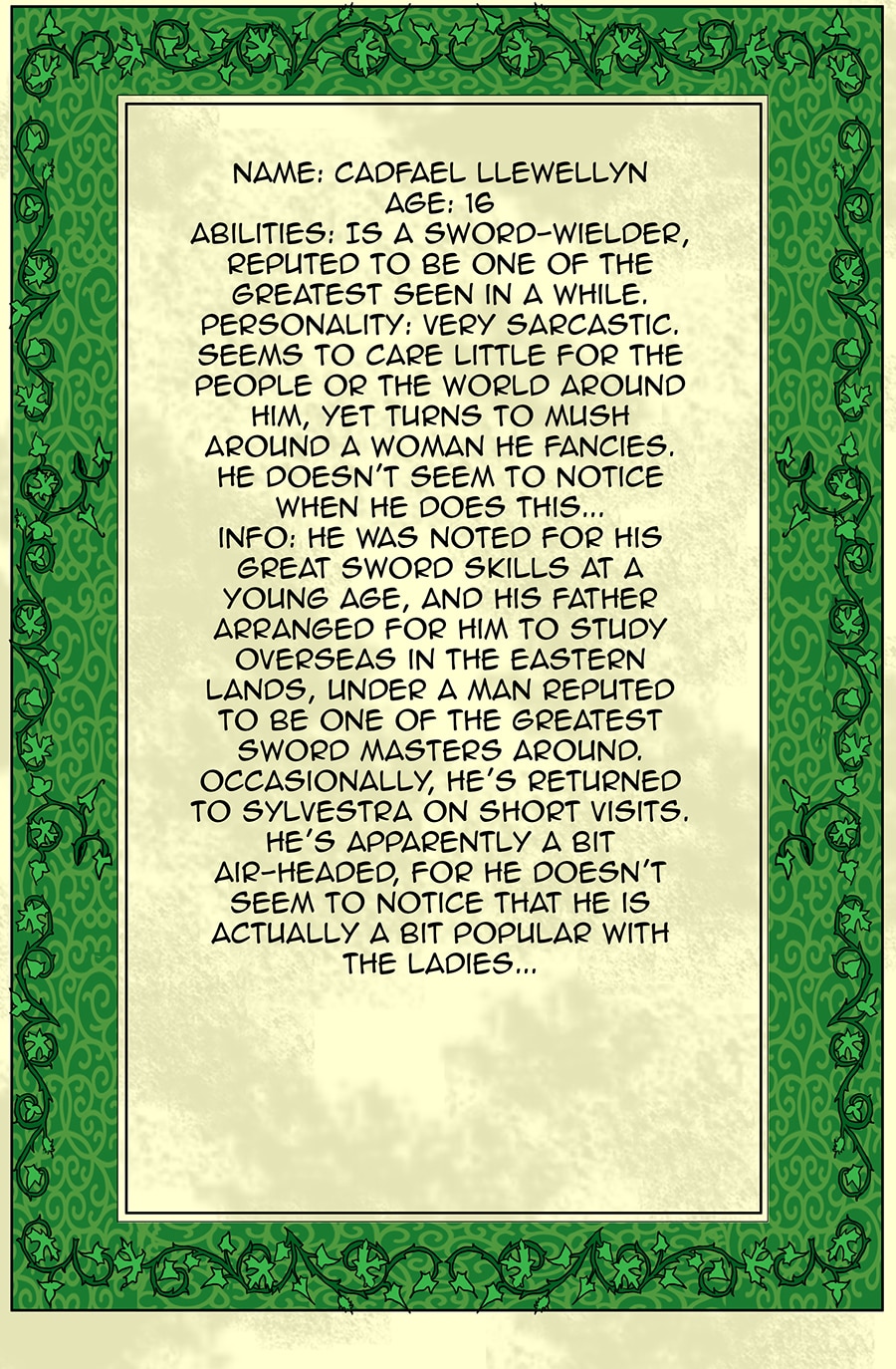 Aaaaand, I figured since I did one for Si, I'd do one for Cav too. Happy Birthday, Cav! (In case you're wondering, 'Cadfael' is pronounced Cad-Vile. Hence why he tries to go by Cav) Sadly, my muggle job consumes my life, so I didn't have enough time to make a profile pic for him. Maybe I'll add one later? Meh... Anyways, if any of you saw my last update, you'd know that I lost all of the comic pages I'd been working on. And I'm poor, so it looks like I get to start them all from scratch. This was just a little break from working on comic pages, but I'll be resuming those right away, and will hopefully start posting more Death Mask in the next week or so. Sorry for the delays @_@ Life is cruel...! Anyways, I hope you guys enjoy! This is just a little tidbit to help keep you informed on what's up~