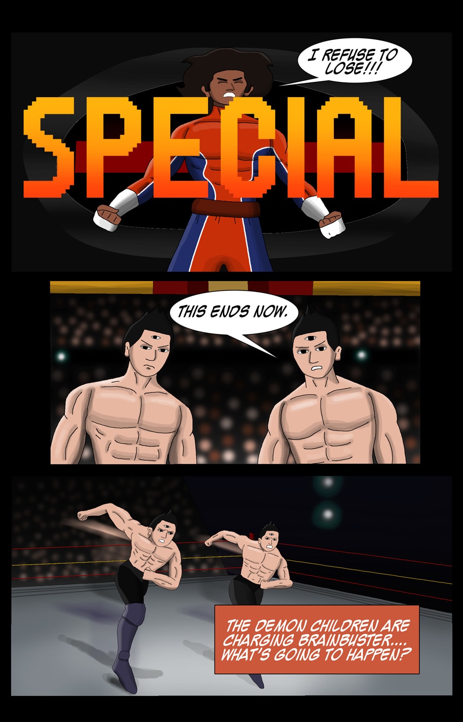 Afro Brainbuster is the journey of a young man who aspires to become the heavyweight champion of Spirit Brawl with the use of his favorite move....his only move.....the brainbuster. Updates: Every other Sunday starting Jan 1st.
