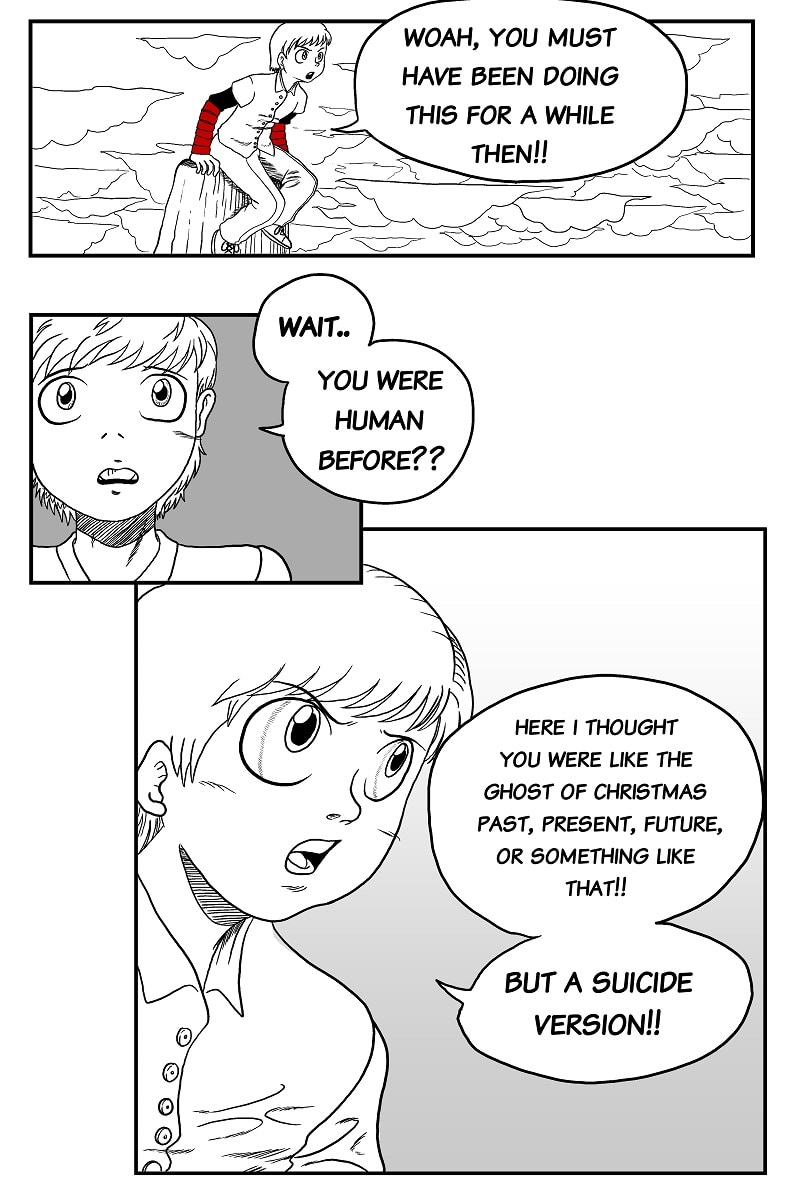 Carol is a young boy who has just committed suicide. He is enveloped with red ribbons around his wrist as a symbol for his cause of death. He meets a young girl with mysterious powers who tells him that he can reverse his suicide as long as he regains the will to live through a series of life evaluations. Will these adventures cause him to live again, or stay dead?