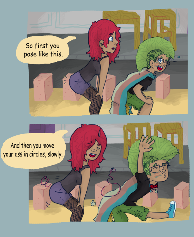 She was trying to show me how to twerk, but not that, in spanish we call it "Perrear" no idea of how its called in english haha, but, there is a tutorial for you to know :,D You are welcome(?