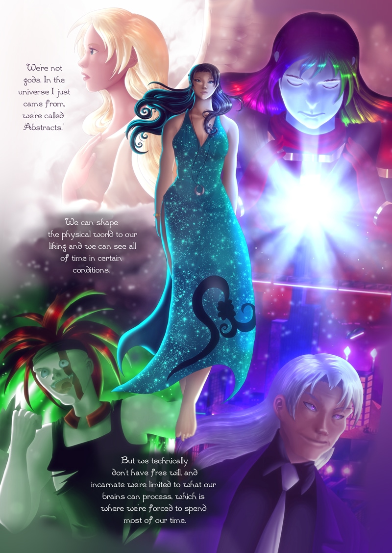 This was partially a remake of an old piece featuring the four Abstracts in the background. Much of the story and design has changed since then: http://whirlwynd.deviantart.com/art/The-Balance-of-Nature-30090759