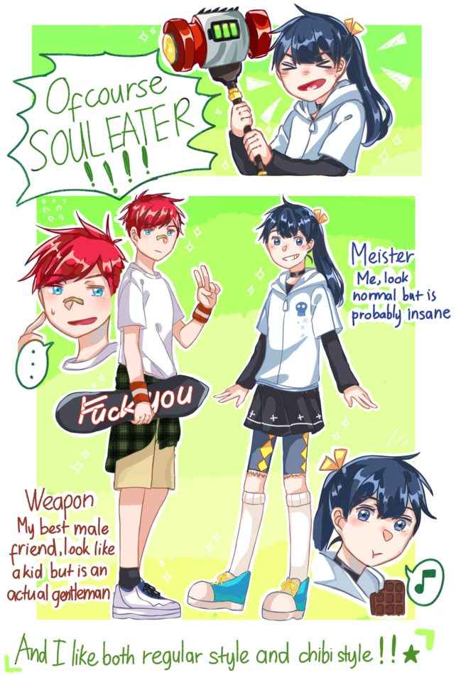 Everyone is creating BnHA ocs so I'm gonna create Soul Eater oc just becauseeee (please don't me wrong I really love BnHA I like it even before the anime release ).