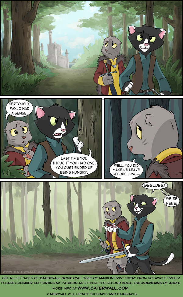 Caterwall is the story of Pax, the orphaned son of one of the kingdom of Katia’s greatest knights. As he nears adulthood he should be taking on the mantle his father left behind, but his impatience with the slow pace of his life in the capital city of Caterwall makes him few friends. The kingdom has been at peace for many years, and the knighthood has been relegated to administrative tasks and pageantry.