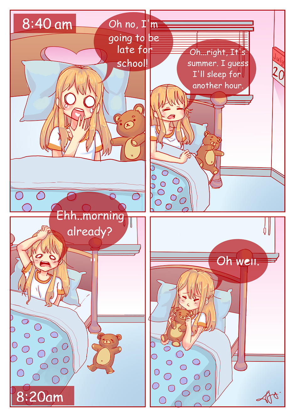 ..so basically I spent most of my summer on my bed sleeping...which inspired me to make this comic...tbh I should wake up earlier just for the sake of being a more productive individual aha...