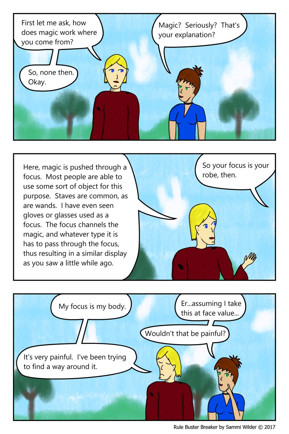 The original idea for his magic was slightly based off a game called Paladin's Quest. It was an old game on SNES, pastel-y colors. Not sure how many people actually played it. The system had no MP bar, and all spells/abilities drained HP instead. While technically Levi doesn't lose "health" per se, it's not exactly pleasant for him to use magic. One might wonder why he still does. There may be a reason why...