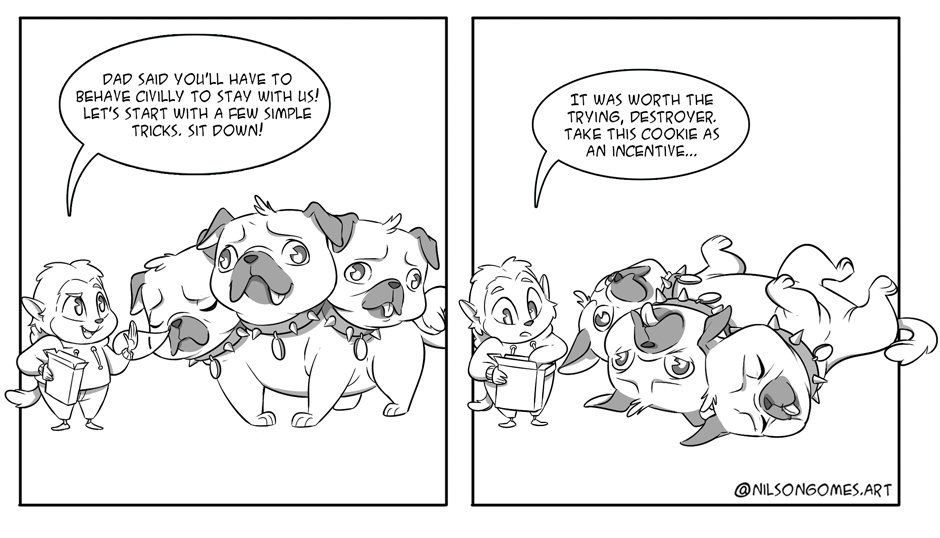 A pug cerberus. Perfect!
