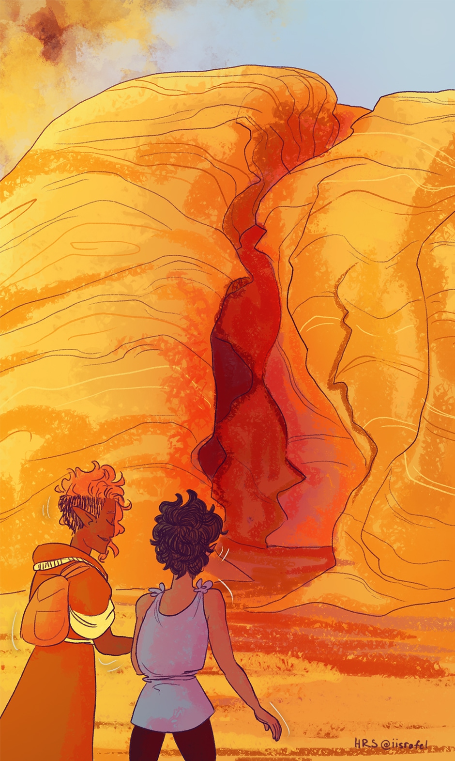So is the big orange thing outside the cave the sunrise? I just want to clarify cause I'm not sure, and it's either that or something is blocking a good part of the cave entrance, which is... alarming.