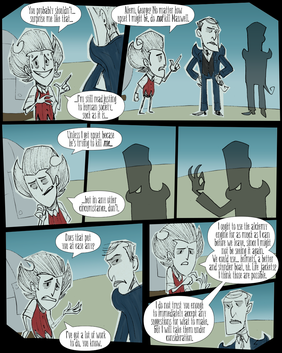 What if instead of building that multiplayer portal, Maxwell and Wilson had built the Seaworthy? They would get mad at each other and be attacked by snakes a lot! That's what would happen!
