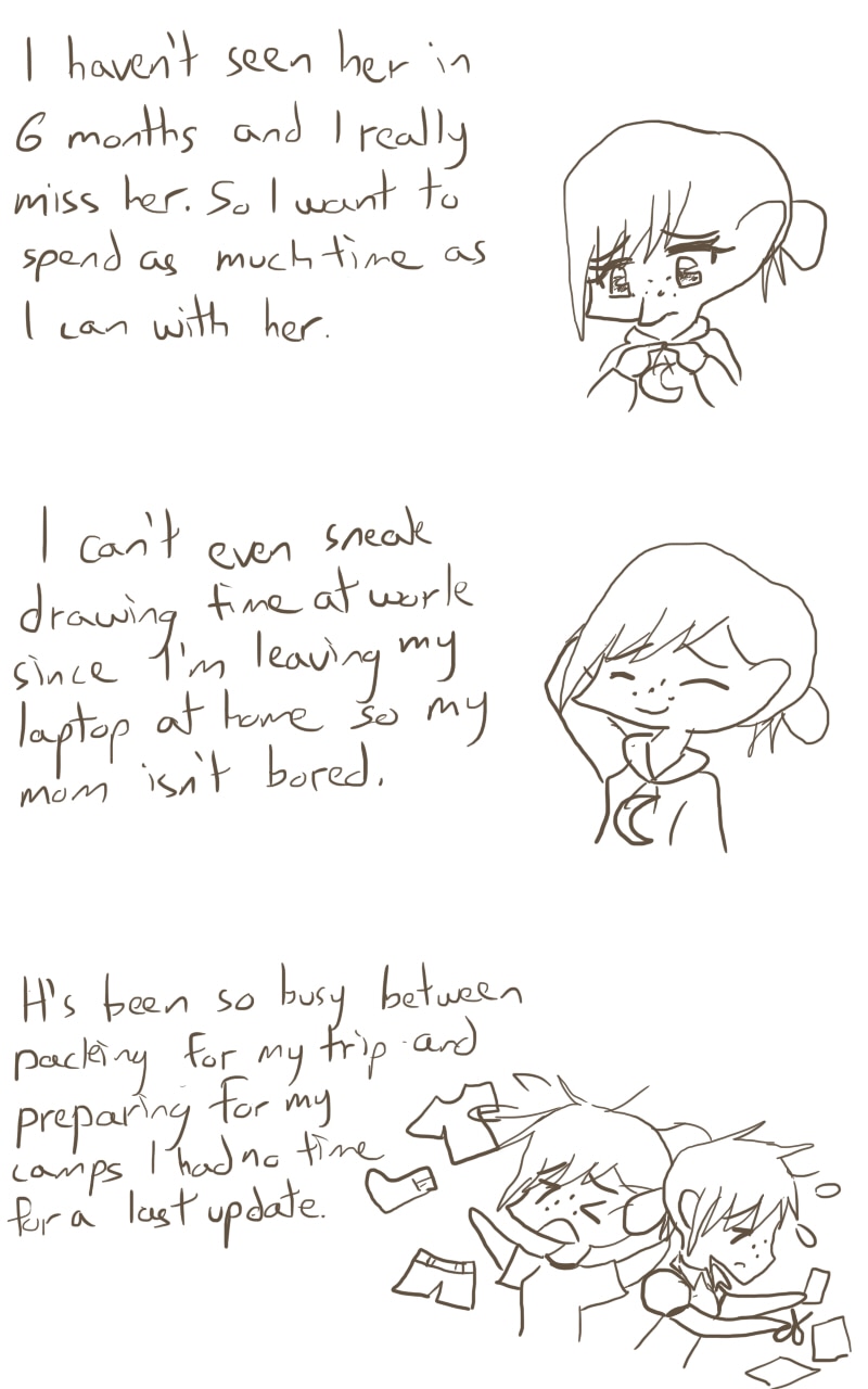 I hate to be doing this so soon after I start but I have no choice. I'll see if I can sneak in some drawing sessions in between but no promises.