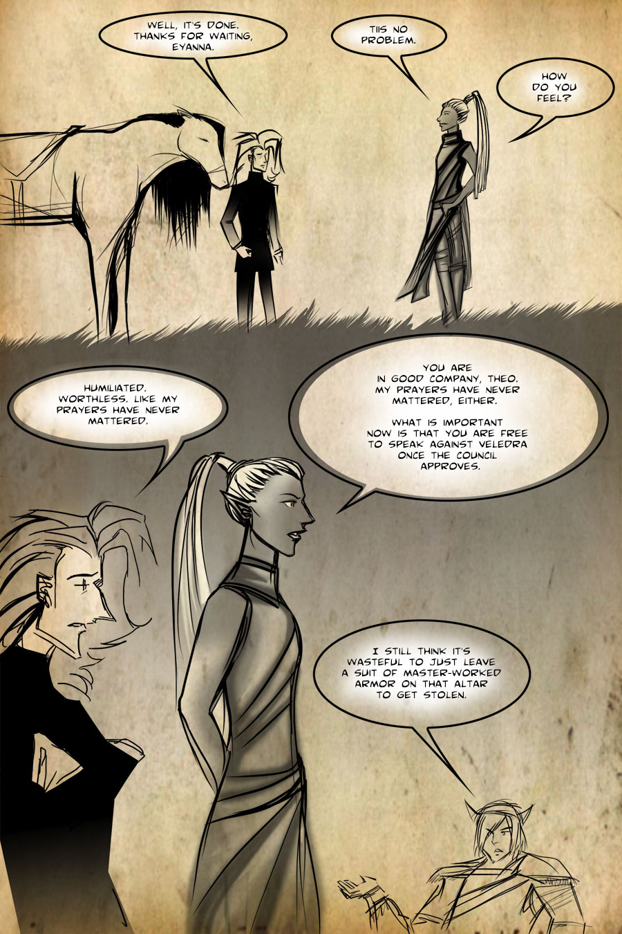 After depositing his armor at his first shrine to Yras, Theo moves to return to Qaar.