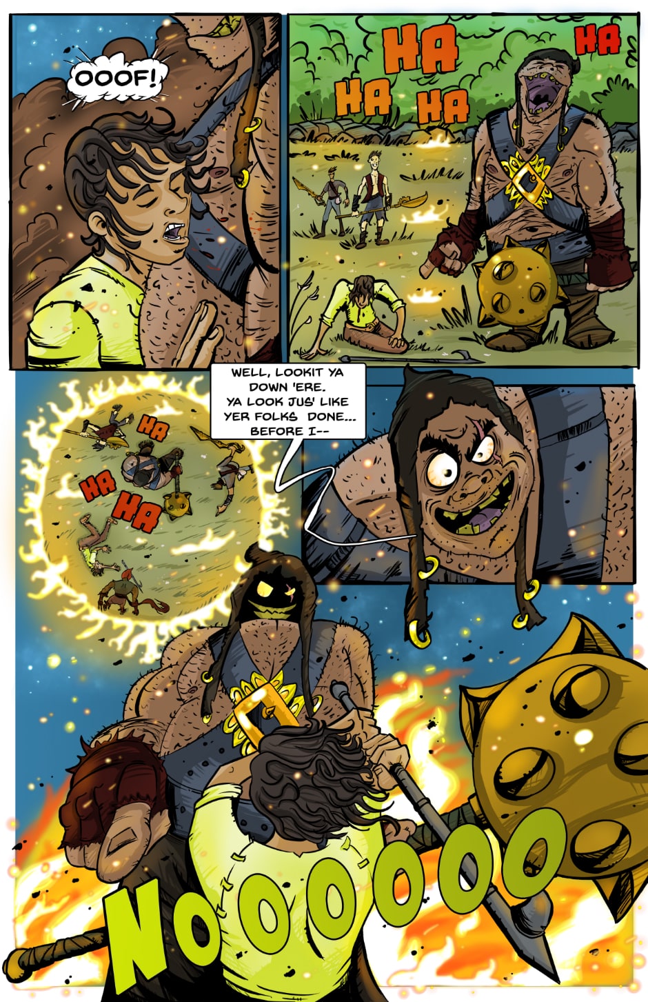 Jaben leads the thugs outside and away from his sisters...but runs into trouble. Vol. 1, Page 10.