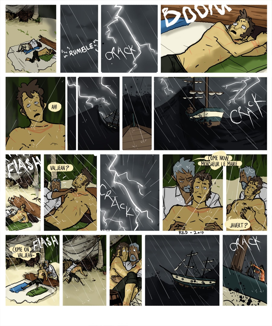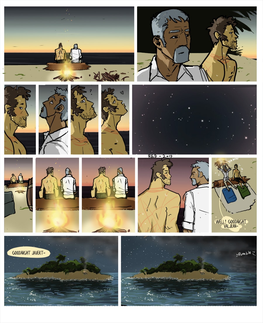 Jean Valjean, in an attempt to once and for all evade French law and his pursuer, the Formidable Inspector Javert, he is marooned on a deserted island with none other than the Inspector himself.