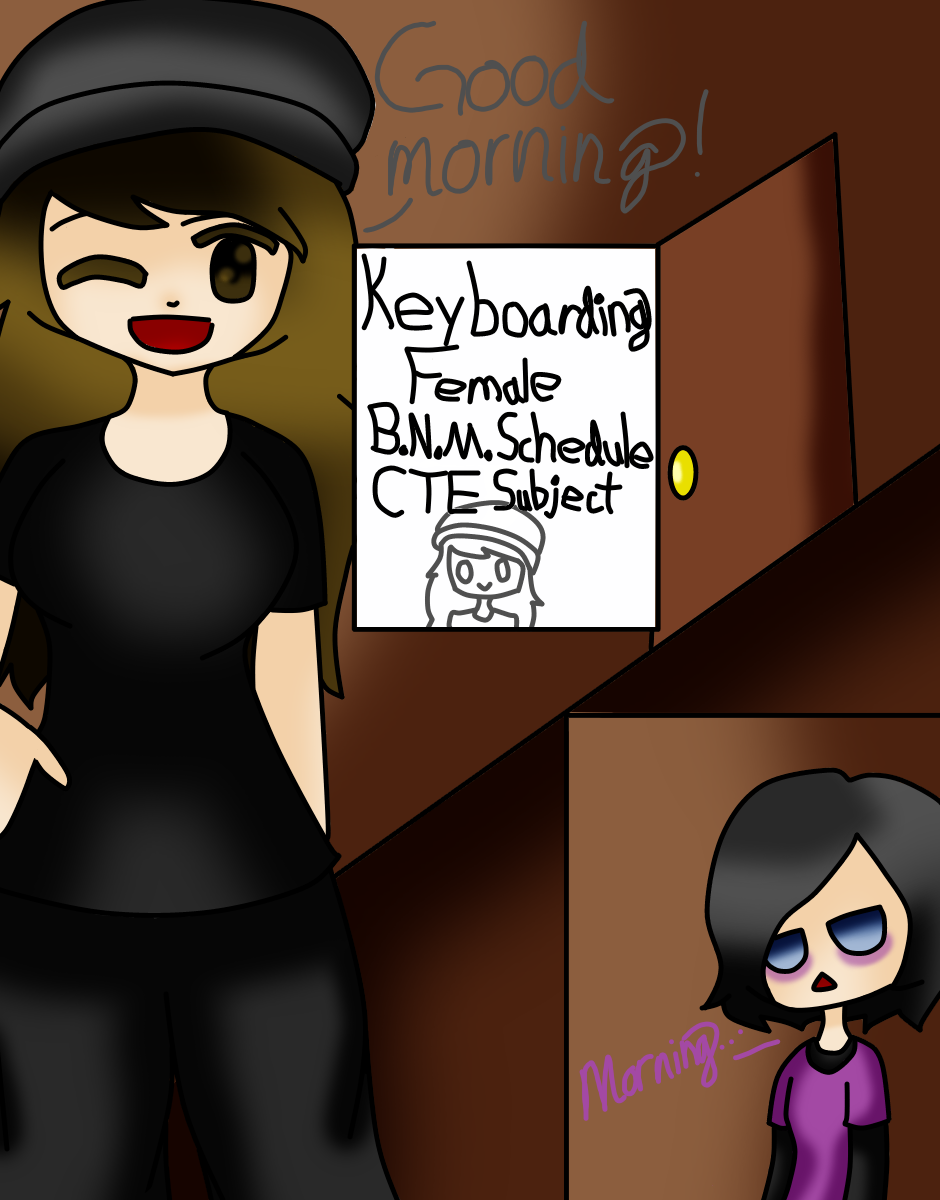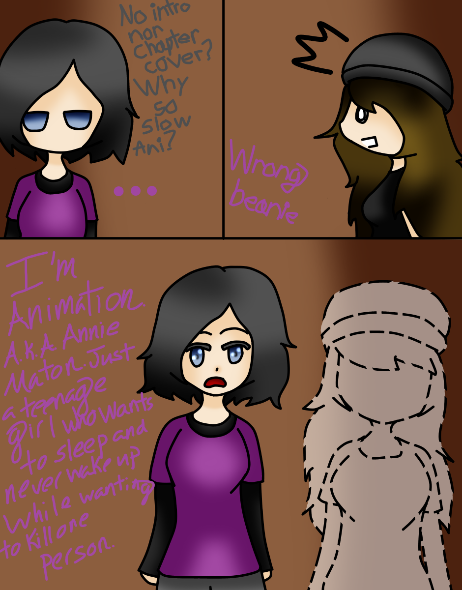 Ready for classes, Animation runs into one of her fellow friends and helps her out of future detention of wearing the wrong clothing. Then again, why does she have a name, but no one else does?
