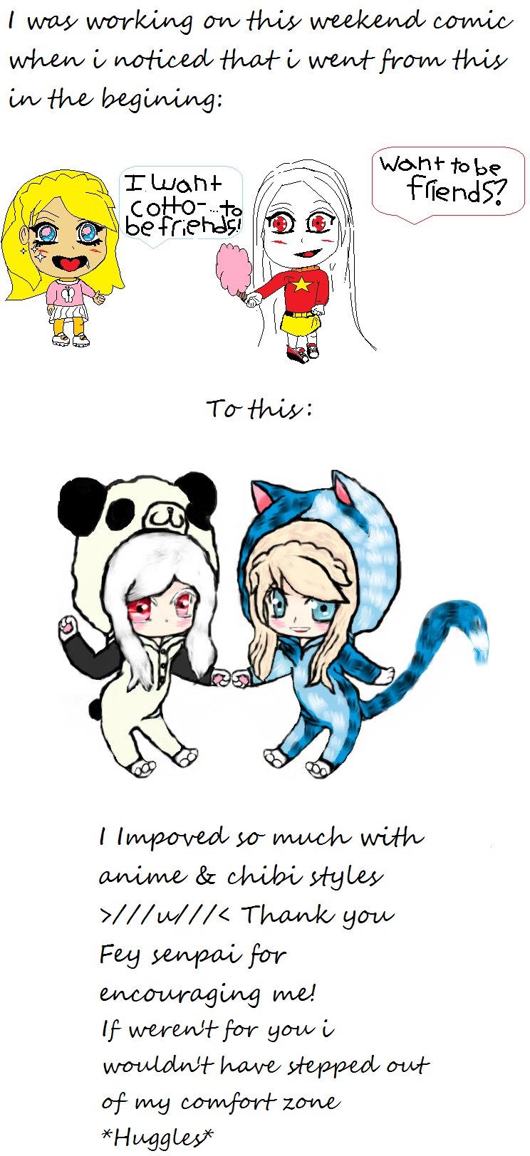 I just wanted to take a moment to appreciate my growth. I'll continue with my comic 2morrow Sunday~ Thanks Fey senpai~ <3 u