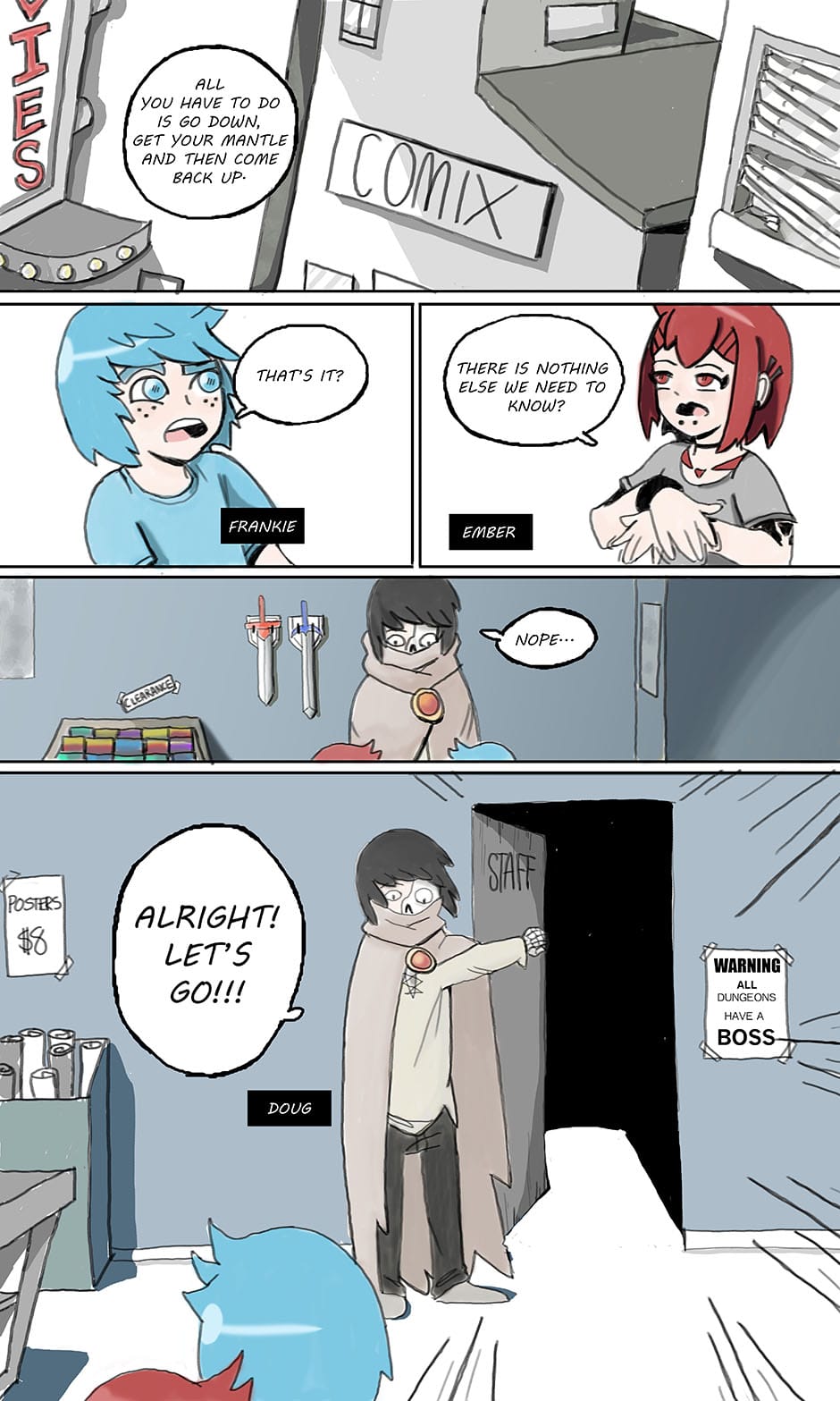 Welcome everyone to a super not sketchy comic book store! What could possibly be behind that door?