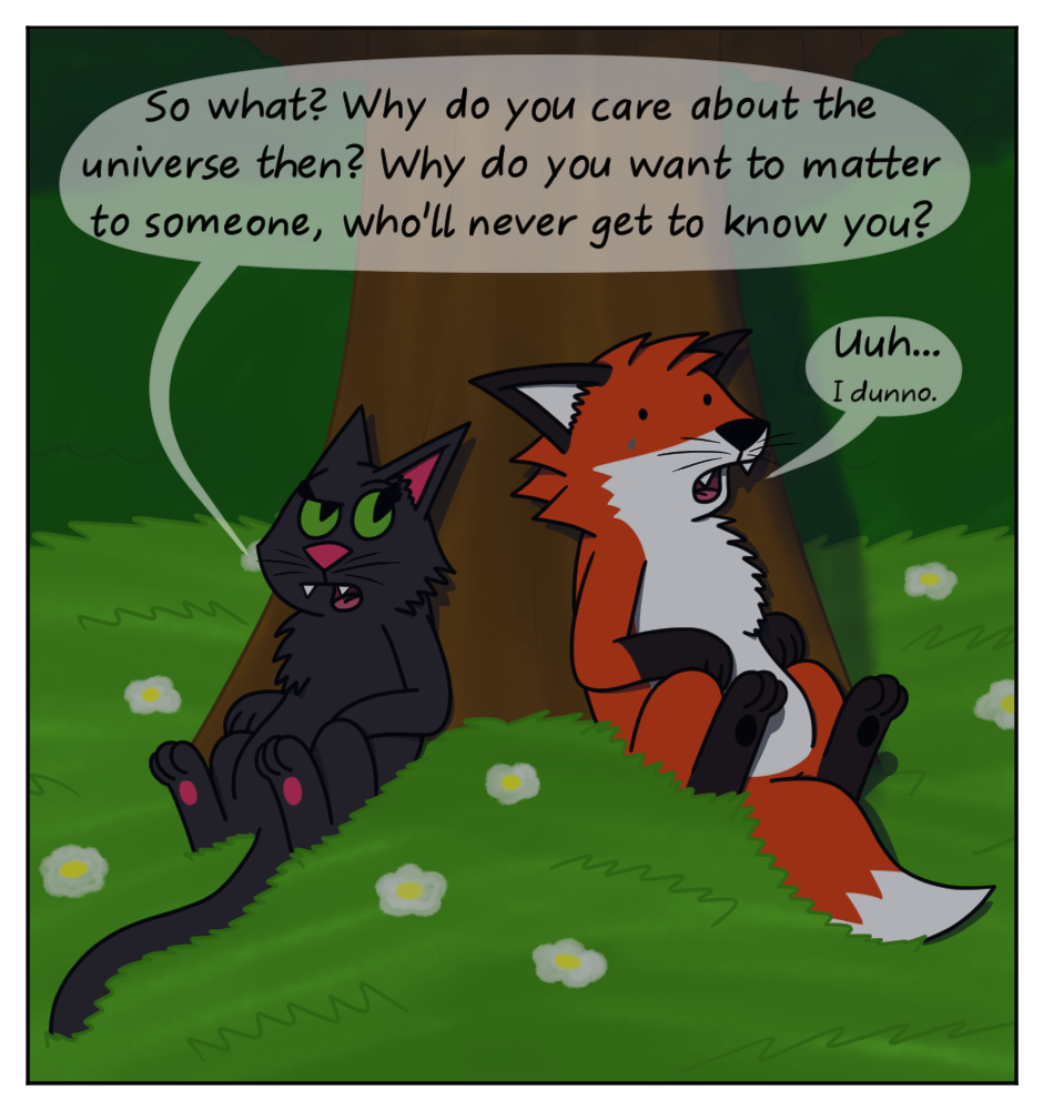 This comic was actually quite complicated to make. Not drawing-wise, but writing-wise. I had the last panel first in mind and all I had to do was creating the dialog leading up to this moment. It was quite a challenge, but I'm happy with the outcome! :D