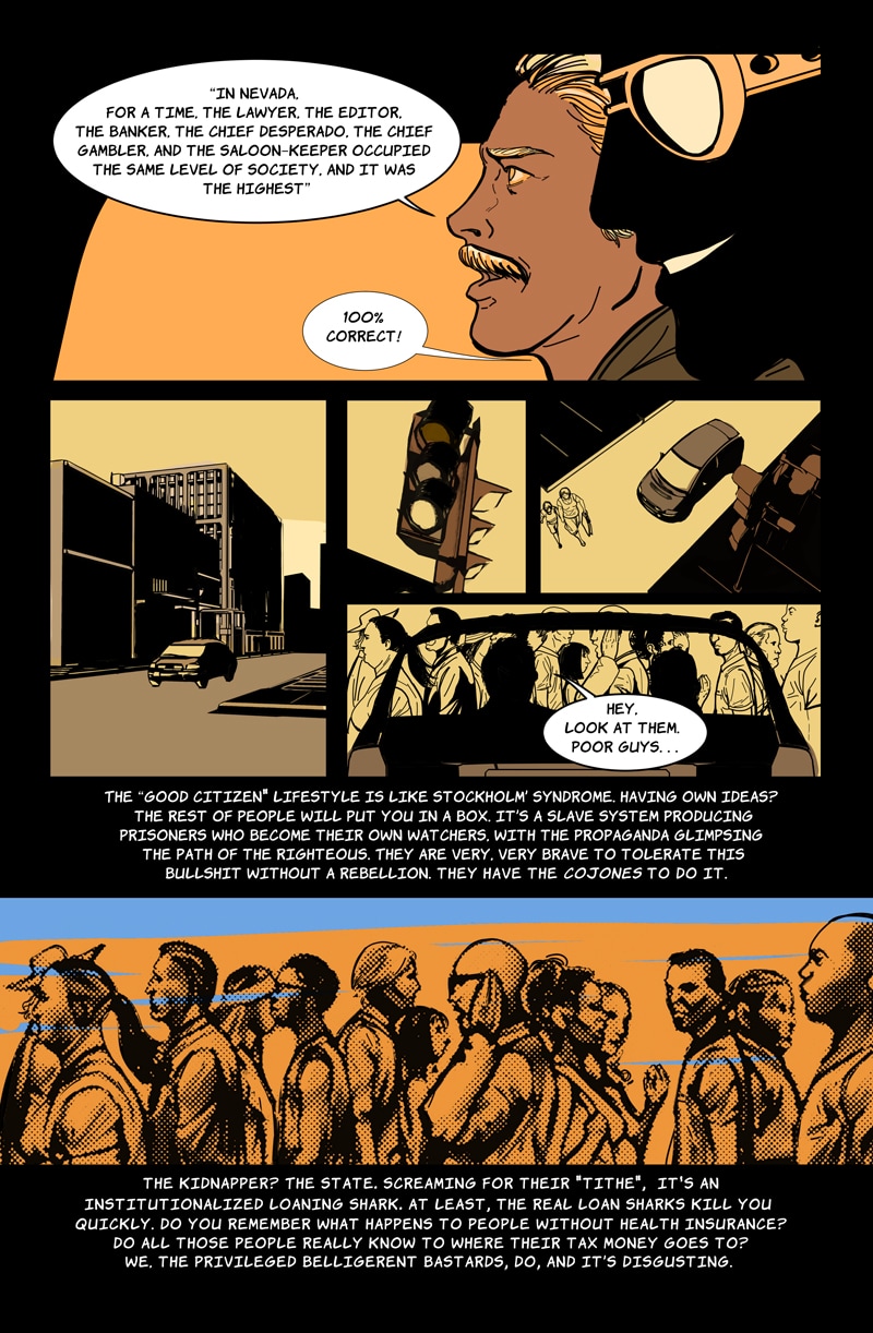 WARNING: VIOLENT CONTENT +18 ENGLISH SPEAKER (PRO) EDITOR FROM CHAPTER 5 ONWARD. Self-contained Graphic Novel. A Sicilian mafia boss' daughter started the Third Mafia War when she broke the rules and became a made member. To survive, she gives her best, but this skill showcase catches undesirable attention. Now a mercenary company, the Kings' Club, wants her to join them. And they won't take no for an answer. A Thriller Pulp Neo-noir comic with a leading lady.