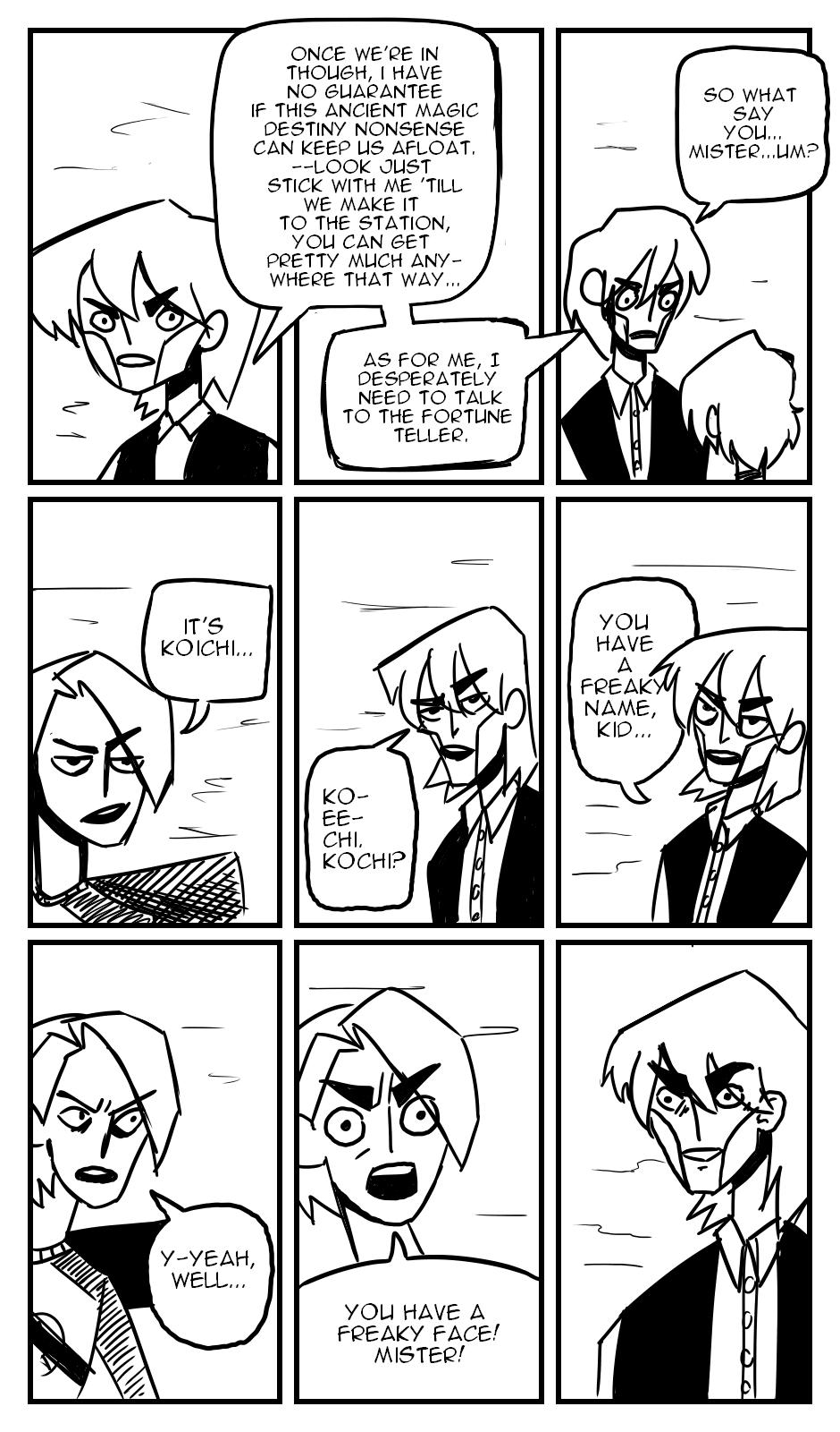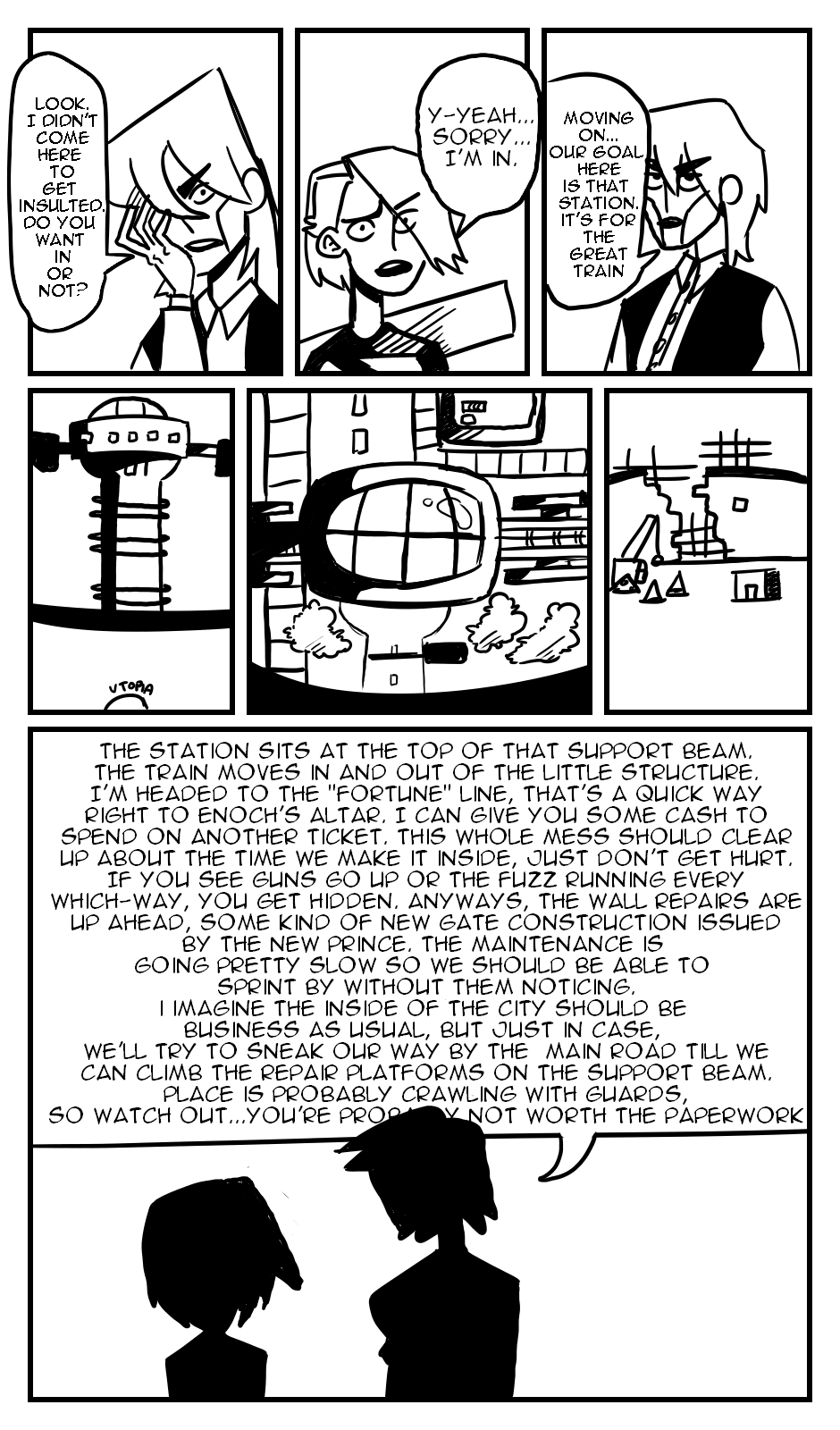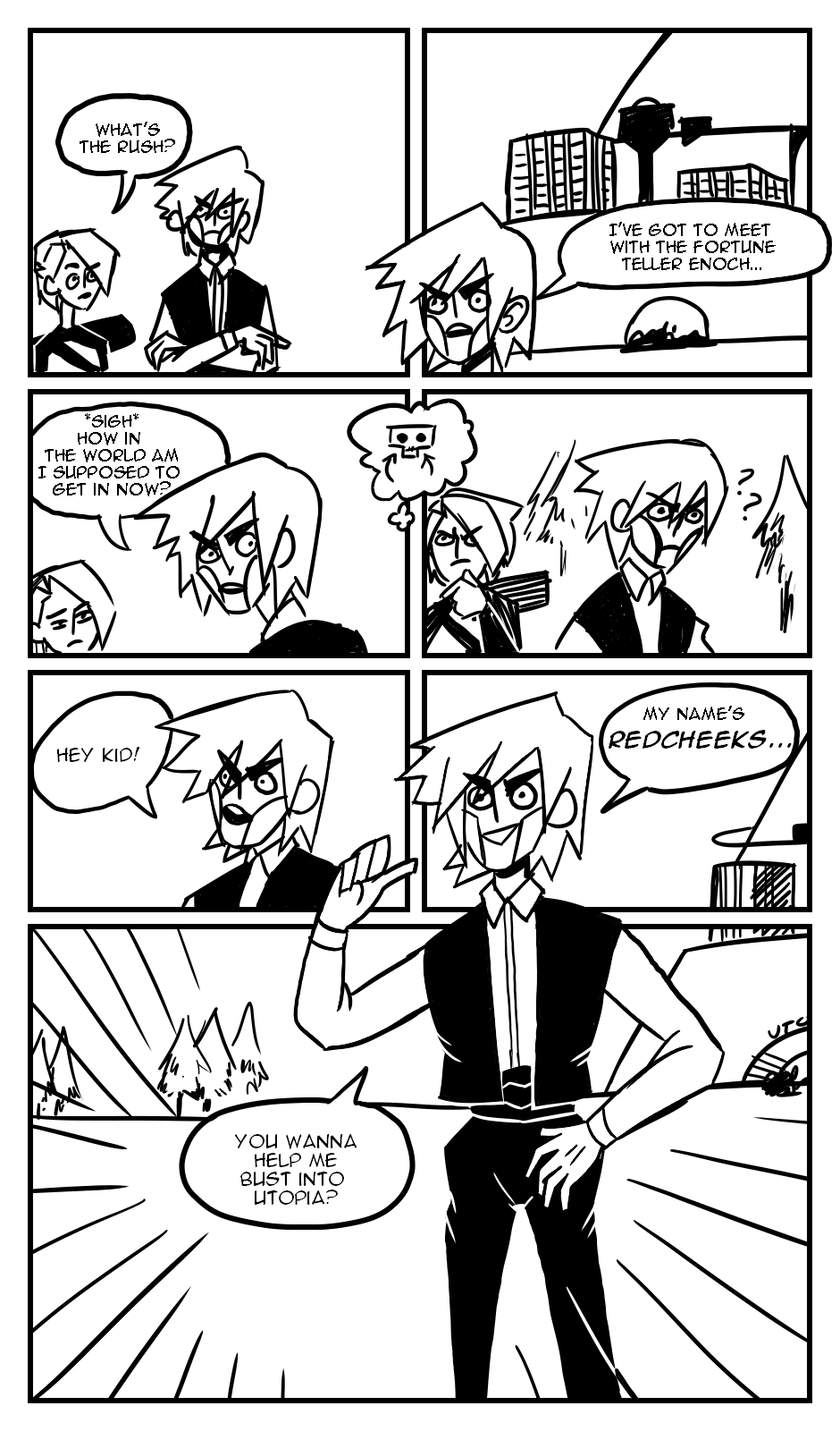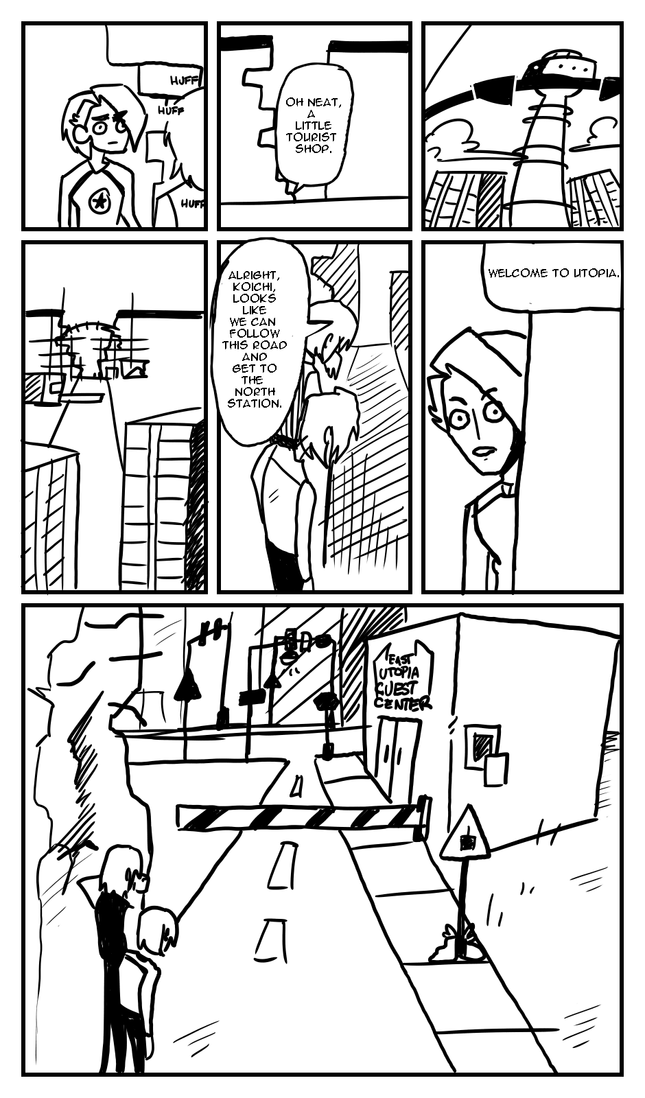 Koichi stumbles upon the bustling city of Utopia, but seems to run into some trouble upon reaching the gate. Koichi meets a soon-to-be longtime friend, Redcheeks, and ventures toward the city, as evil lingers above.