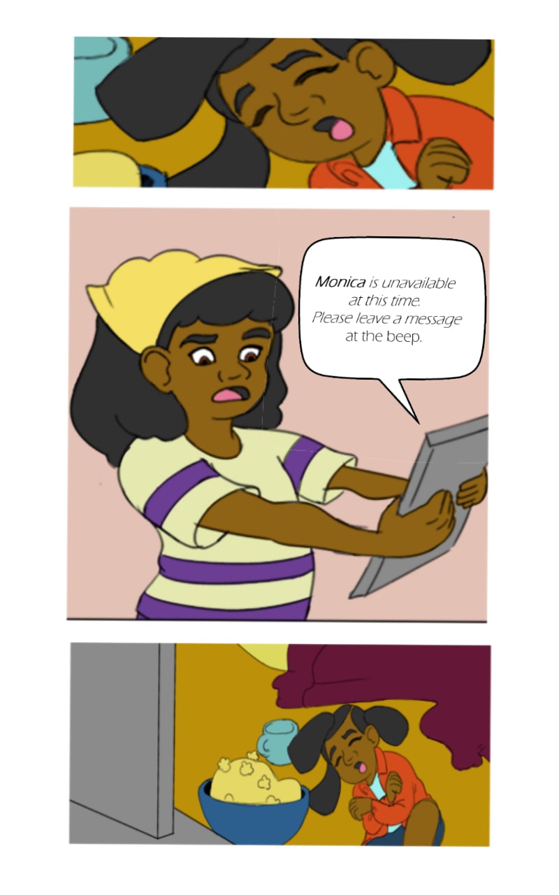 17. In a panic Penelope decides to use her contact to Monica via their shared class to help distract her through this moment.
