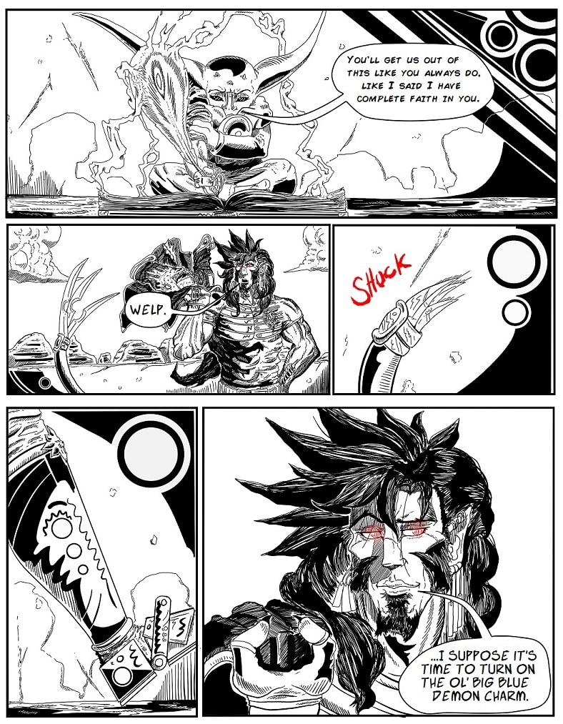 Stripped of his goals, his family, and himself; Arthis travels the magic scarred world of Amplexus in self-imposed Exile, questing to save his own life. Driven by loss, and the curse which changes his body day by day into that of a demon; Arthis must gather the pieces of the sword which curses him, or face death by it's will.